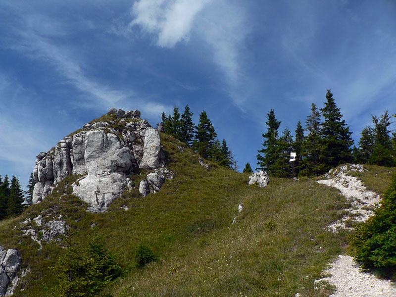Pod sedlom Misa sklon už menší, chodník lezie z lesa a nad sedlom sa otvárajú výhľady – najmä dozadu na hlavný hrebeň. Zadná Ostrá už je na skok, kľučkovaním pomedzi bralká a stromy. A z nej hrebeň, ostrý ako britva, na tú hlavnú Ostrú (1247m). Na záver výstupu spestrenie – schody ako do neba, pár metrov reťazí a prielez skalným oknom. A zhora rozhľad: rovných 360! Len ľudí je tu vždy ako hadov.
