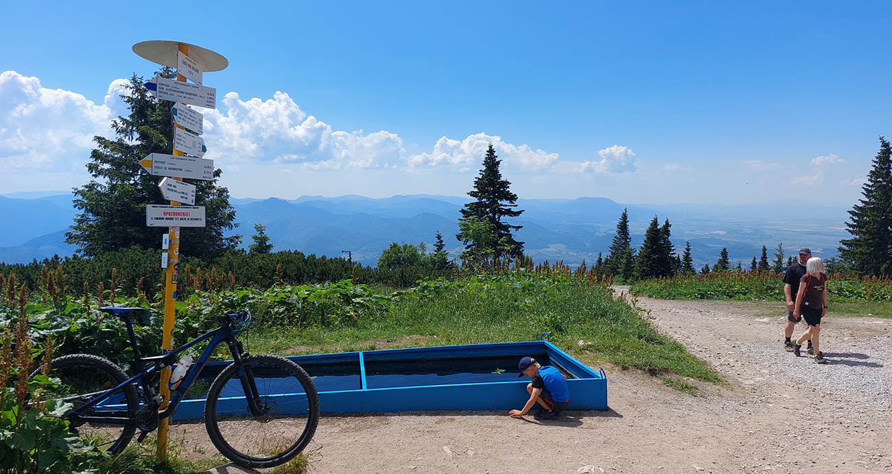 Dotankovať sa dá a aj pozmývať soľ v silnom prúde vody, tečúcej nonstop do protipožiarnej nádrže. Ku chate niečo objednať, to ani nejdem, tam sú v takomto čase davy. Ostáva len dofúkať, zazipsovať, nahodiť okuliare (alebo inú, voliteľnú ochranu proti útokom hmyzu) a davaj dole.