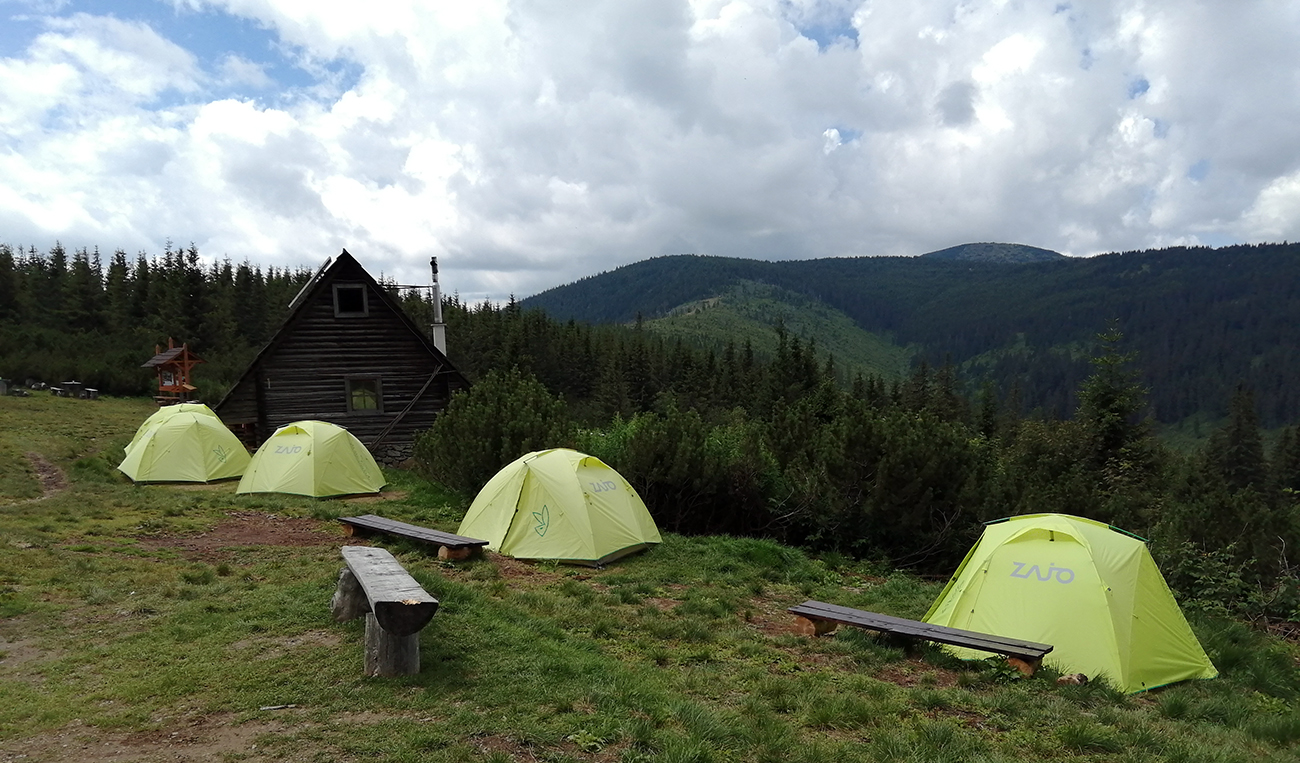 Stanové mestečko rozložené, polievku práve dovárali, pivo a radler mali chladené v studničke, obsluha fajn a aj malé mačky pre spestrenie zážitku sa klbčili okolo chaty. Posedíme, oddýchneme, sledujeme čas a počasie a už to len zjazdíme nazad do Tepličky modrou cez Ždiarsku dolinu a Staníkovo. Treba opatrne, sem tam je mokro z predošlých dažďov, sem tam blato pri kraji, alebo voľné šutre, ale ide to samo z kopca. Len hamovať a kerovať. Cesta prázdna, turistov nikde, no je pondelok, máme aj v tomto ohľade voľné pole.