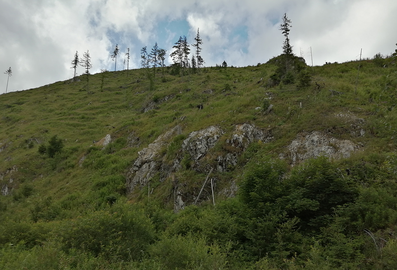 Nad Staníkovom vidíme unimobunku a Suzuki Samurai v terénnej úprave, tak ideme pozrieť čo to je. V bunke miestny lesník a tak sa Peťo dáva do reči, na tieto končiny a históriu je lepší macher ako ja. Preberáme všetko po poriadku, SNP a partizánov, lesnú železničku, a keby nás čas netlačil, v romantizme spomienok aj zabivakujeme. Ja mám času dosť, len Peťo má limit na výlet, tak sa lúčime a pokračujeme dole. Po ľavej ruke krásne strmé svahy, ej tam veru cez meter snehu a dobre by to išlo, len je to na juh, tak v zime opatrne.