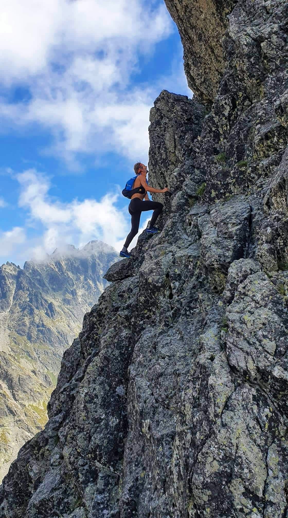 Konečne Gerlachovský štít . Kocháme sa výhľadmi . Pri pohľade na Lomničák nechápem ,ako som sa mohol odtiaľ dostať až sem . Keď však zbadám čo nás ešte čaká, prestanem sa rozplývať. Táto časť hrebeňa sa lezie veľmi málo. Musím sa nenormálne sústrediť, hlava mi už úplne vypína . Všade samé machy ,samé lokre . Stačí vybrať jeden osudový loker a čauky. Zachrániť ťa môže už len orol skalný ,ak ťa stihne zdrapiť do pazúrov pri voľnom páde. Gerlachovská veža (9) a konečne DESIATY - Kotlový štít. Tešíme sa ako malé deti .
