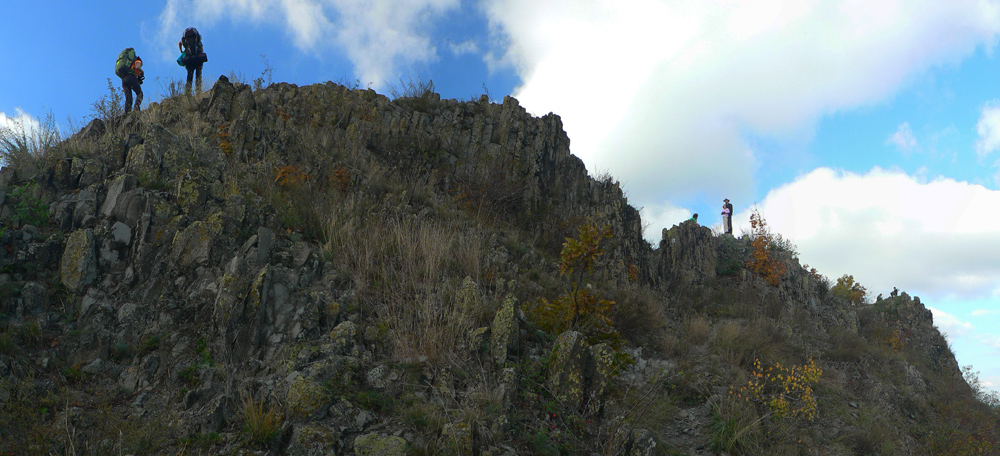 Preto jednu neskorooktóbrovú sobotu ráno stojíme dvaja v zahmlenom, vlhkom a chladnom Fiľakove pod hradom, čakáme na autobus s druhou polovicou „expedičného zboru“ a dúfame, že tá sivota rýchlo zmizne. Prianie sa plní a na hranici v Šiatorskej Bukovinke už vystupujeme do slnka. Za gambáčik domácej na zahriatie, skúška rovnováhy na dvoch brvnách cez potok a už hľadáme žltú, ktorá sa nám v tej záplave farieb kdesi stratila. Nachádzame len srnky, ideme za nimi, veď smer je jasný, Karanč (727m) nad nami. Inak je to tunajší najvyšší končiar a jeden z mála andezitových, lebo väčšinou je pod nohami čadič.