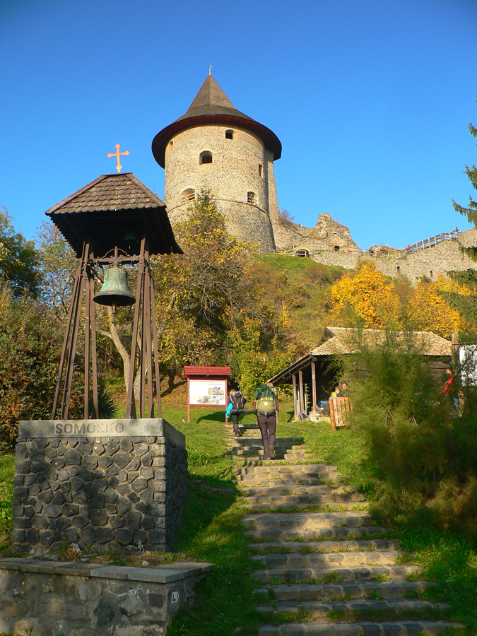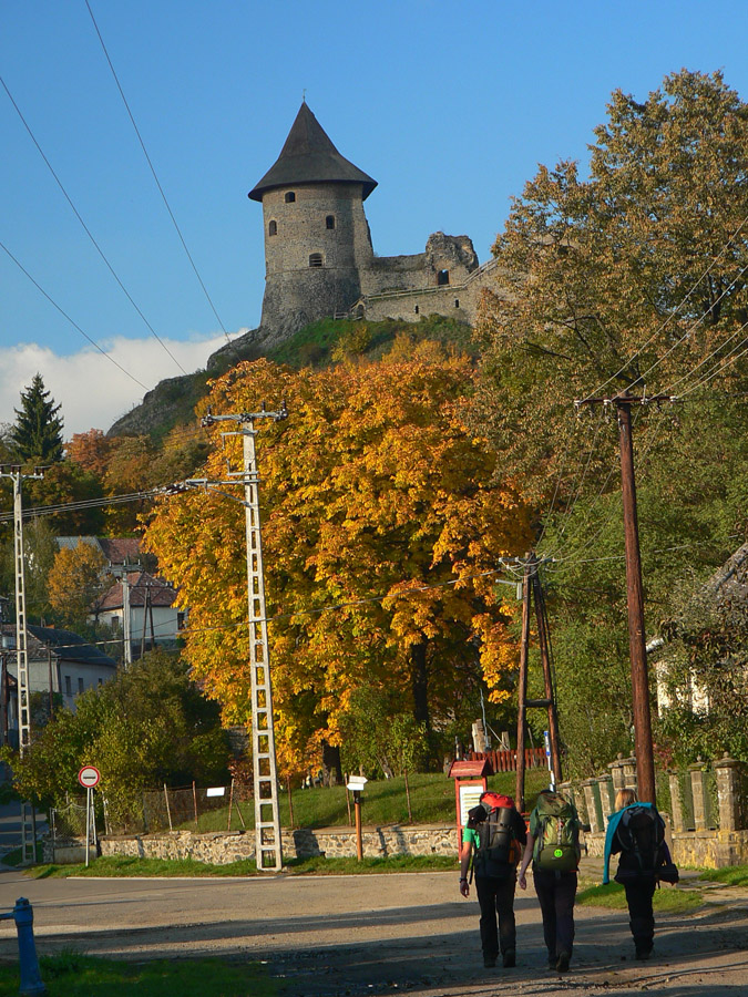 Zase strmo, tentokrát dole kopcom po „hračkárskych“ maďarských značkách (krížiky, trojuholníčky a všakovaké iné oné) - hýria farbami rovnako ako les. Ľahký obed z igelitového sáčku v Somoskőújfalu, lepšie sme si nemohli vybrať - na betóne pri hlavnej. Žeby kyslíkový šok neprišiel. Nasledujúca medzistanica - hrad Salgó. Cesta k nemu vedie najprv po telese bývalej úzkokoľajky (dokonca aj s tunelom!), potom po blatnatých zvážniciach. To sú cyklotrasy, miestni si „vychutnávajú“ blatko, my sa môžeme zaprasiť, my sme na čundri!
