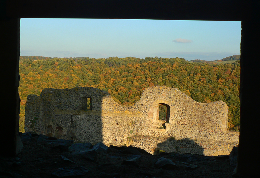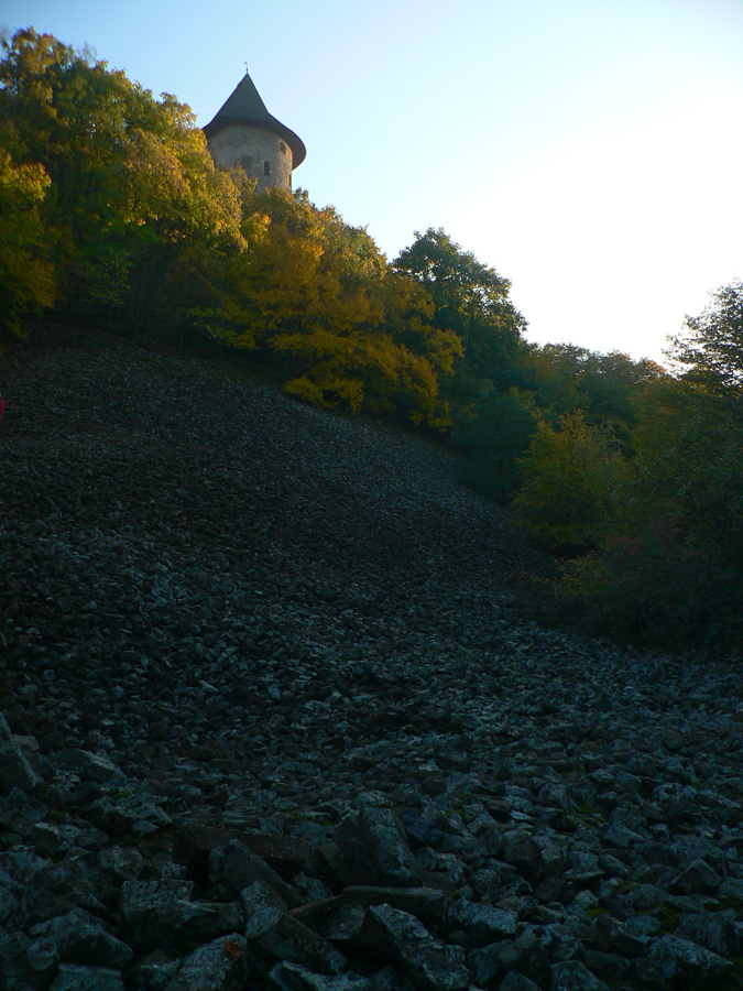 Hrad Šomoška vypipľanejší ako ten prvý, vstup za tvrdú euromenu symbolický, s pokladníkom sa dá aj po slovensky (s typickým prízvukom samozrejme), aj zazvoniť na zvon si človek môže, len to sa každý potom obzerá. Hraničné kamene priamo na chodníku na hrad, to tu nejako divne rozdelili nie? Ľudí dvojnásobne viac ako na Salgó, niektorí aj tí istí. Však autom sa dá. Zas suplujeme japonských fototuristov, podobne nižšie pod hradom pri svetoznámom „čadičopáde“, tam sa dokonca stojí na fotky pekne v rade! Aj kamenné more obzrieme a preč spomedzi víkendových davov, do ticha lesa, ktorý medzitým nadobudol ešte farebnejšie farby. Slnko je už tesne nad obzorom.