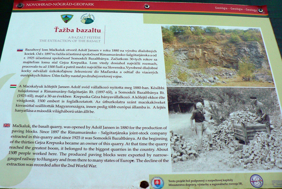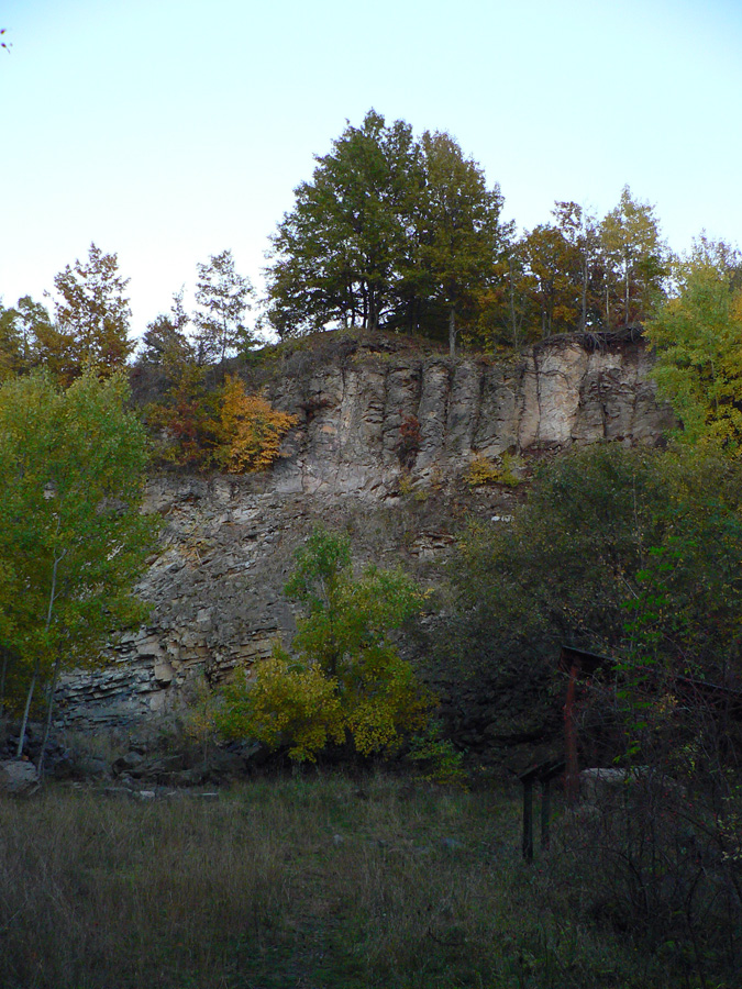 Cestou ešte stíhame prečítať čo-to o ťažbe a geológii v opustenom lome, sopečné vrstvy sú tu pekne poodkrývané. Ale chytrejšie ďalej, začína sa stmievať a nás ešte čaká kus cesty, nech to zajtra nemáme poklusom. Hádam prvá väčšia lúka od obeda, potom už les a zostup do Obručnej po rozbitej asfaltke (už s čelovkami). Chaty nad dedinou majú už svoju slávu dávno a dávno za sebou, žiadna škoda ísť tadeto za tmy.