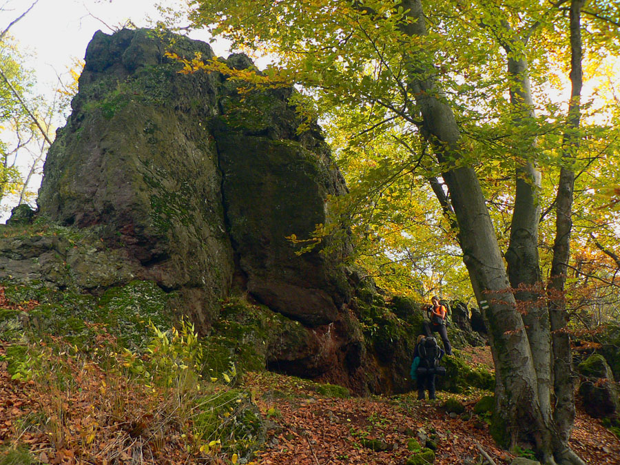 Lebo sa ešte raz vraciame kus nazad, k vyhliadke na okraji tejto lávovej plošiny, loviť ešte dáke zábery. Útržky hmiel sa dvíhajú z farebného lesa, pod skalným zrázom skalné mesto obrastené machom, no rozprávka - aj v tej sivote.