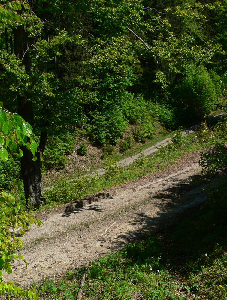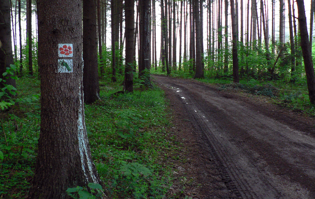 Na začiatok som sa teda potreboval dostať do ústia Čiernej doliny. Z Teplíc tam síce vedie zelená, ale tú poznám, tak som išiel preskúmať alternatívu – Multifunkčnú Greenway Trasu. Podľa názvu to musí byť bomba a nad ústím sa napojím na tú zelenú, som si hovoril... Hej, bomba zvážnica je to, navyše po dažďoch májových, mňam. Ak bolo sucho, tak vďaka makadamu. Výhľady asi dva, cez čerstvé rúbane. Ale účel splnený, pri chatách som sa napojil na zelenú, spadol spolu s ňou na hlavnú cestu a oproti už svietil smerovník v ústí Čiernej doliny.