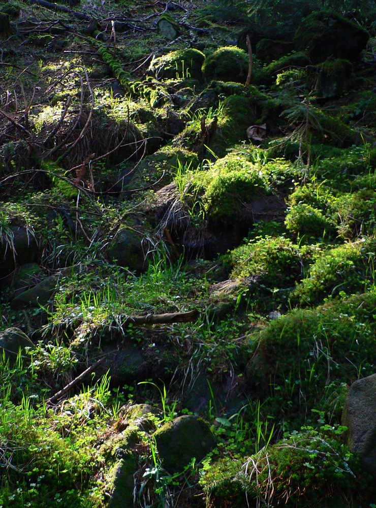 Lebo odtiaľ už len poriadne strmá zvážnica. Pozvoľne sa mení na chodník a naberá stále viac percent. Les okolo zdivočieva, navyše ostatná zima vďaka návalom snehu a následnému odmäku s víchrom tu pováľala preveľa stromov. Keď už potok spod kameňov obalených machom nevidno, len počuť, sklon a divokosť dosahujú svoje maximá, už to dlho netrvá a sme hore.