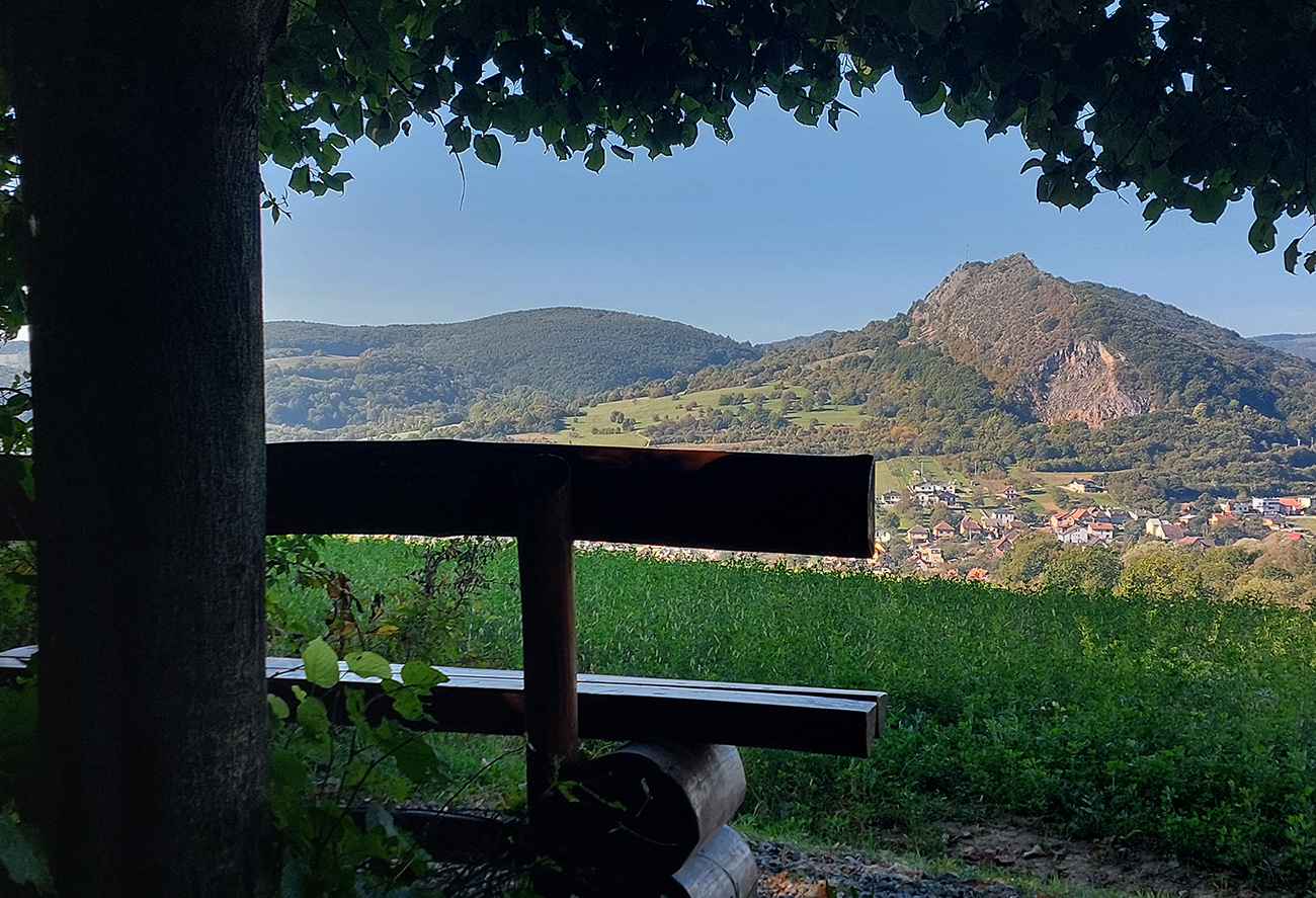 Pod Vršatskými bradlami plno, autoturistika poriadna, len som sa pokochal skalami a panorámou kotliny na východe. A davaj dole, do poslednej „etapy“. Tou bol dlhý a miestami strmý zjazd zo sedla Chotuč do Pruského (zelená značka). Opačne by som to teda ísť nechcel. Na bajku, pešo by to bola príjemná prechádzka. Zas početné výhľady, tým na sever a východ už slnko nevadilo.