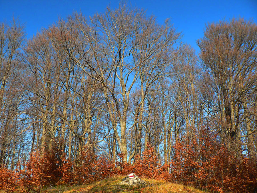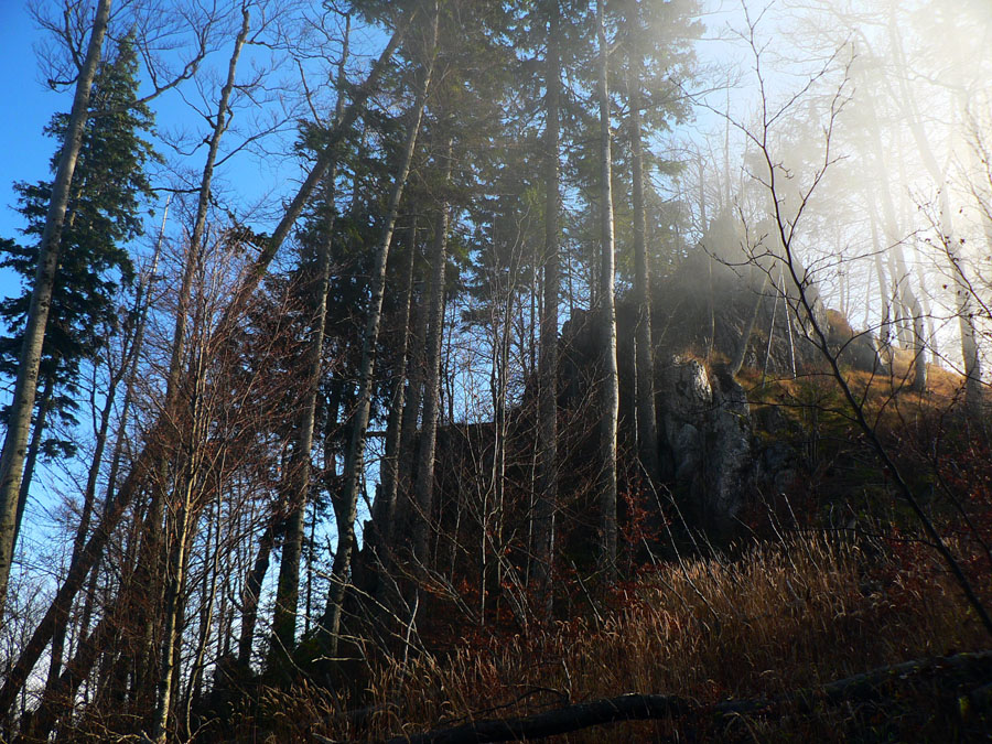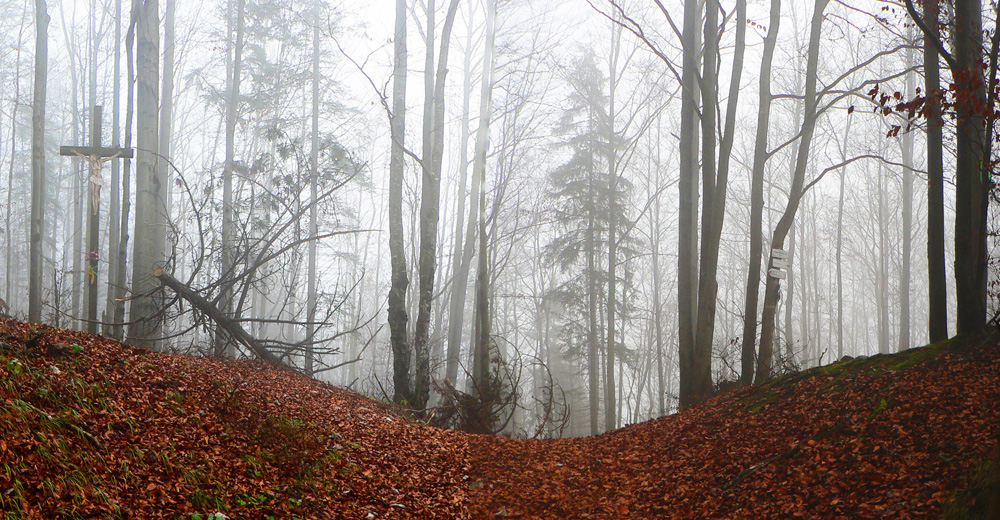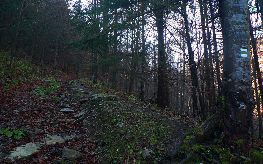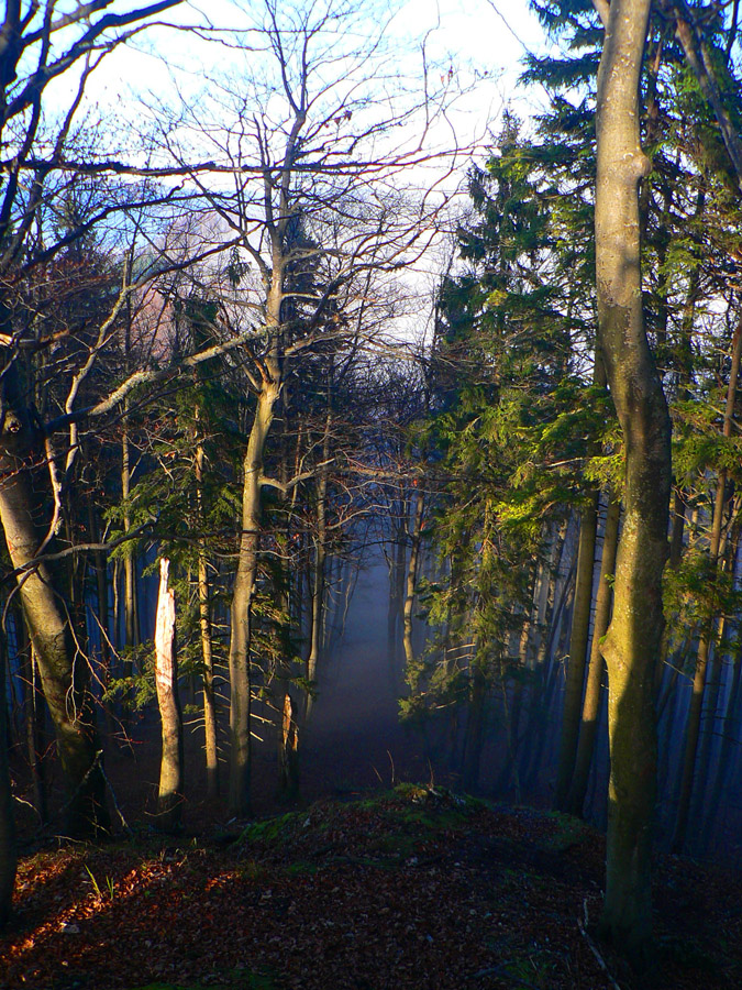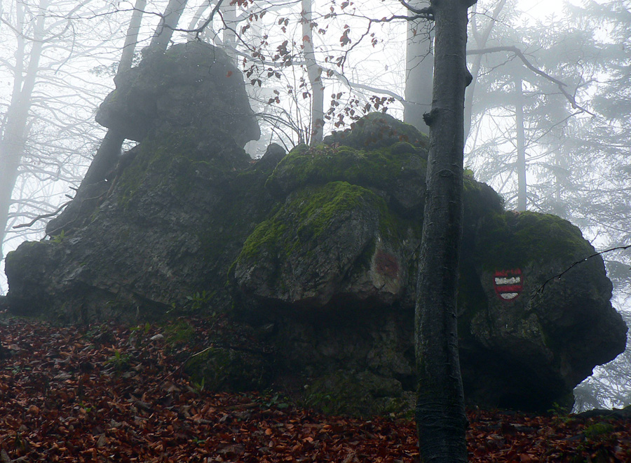 V Rybovskom sedle som takto asi o 2 hodiny, čaká ma asi polhodinka pochodu po holiach s výhľadmi a potom ponor do lesa, najmenej na dve hodiny. V mojom prípade aj do hmly, ktorá sa ako vodopád tlačí z Horehronia do Revúckej doliny. Aj s patričnými „efektami“: kým na holiach je sucho a teplo, v hmle fúka, zo stromov regulérne prší, zima zalieza za nechty. Podvedome zrýchľujem. Tretíkrát tadeto idem a zatiaľ som vždy zmokol :-)