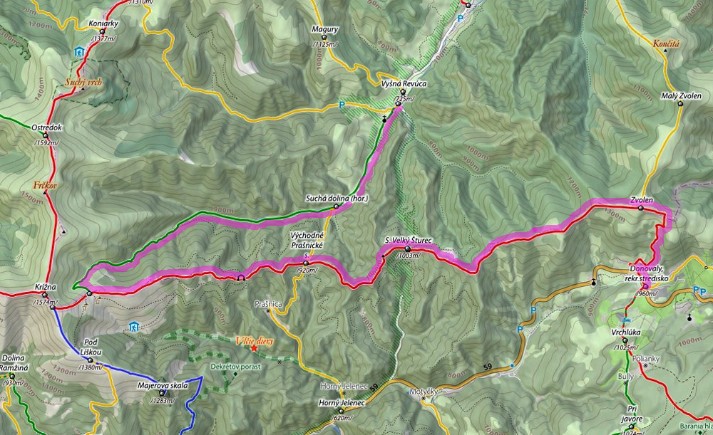 Na Krížnej sa vždy motá veľa ľudí, na Donovaloch takisto, ale na spojnici medzi nimi je často umenie stretnúť človeka. Možno ešte tak bajkera či motorkára, ktorý križuje tento nenápadný hrebeň po zvážnici (a zároveň cyklotrase)cez niektoré z troch dostupných sediel. Pritom je táto hrebeňová spojka medzi Nízkymi Tatrami a Veľkou Fatrou veľmi pekný chodníček: na začiatku a na konci sú parádne výhľady z lúk a v strednej časti (v lese) tiež nie je nuda, lebo pochod spestrujú početné skalky a bralá. Na rozdiel od oboch známych susedných (hlavných) hrebeňov, ktoré táto trasa spája, v zime to tu nie je veľmi vhodné na lyže. Pretože je to neustále hore a dolu v sérii krátkych, ale strmých stúpaní a klesaní. A chodník vedie často v mladine, kade predrať sa je niekedy problém aj v lete. Po daždi je to tam ako v sprche.