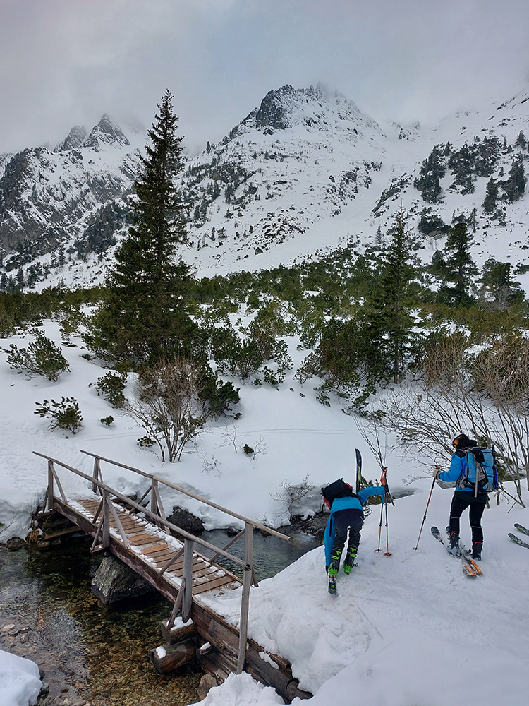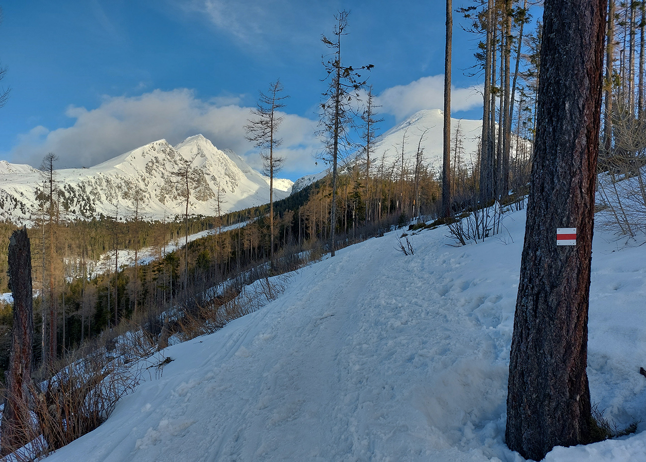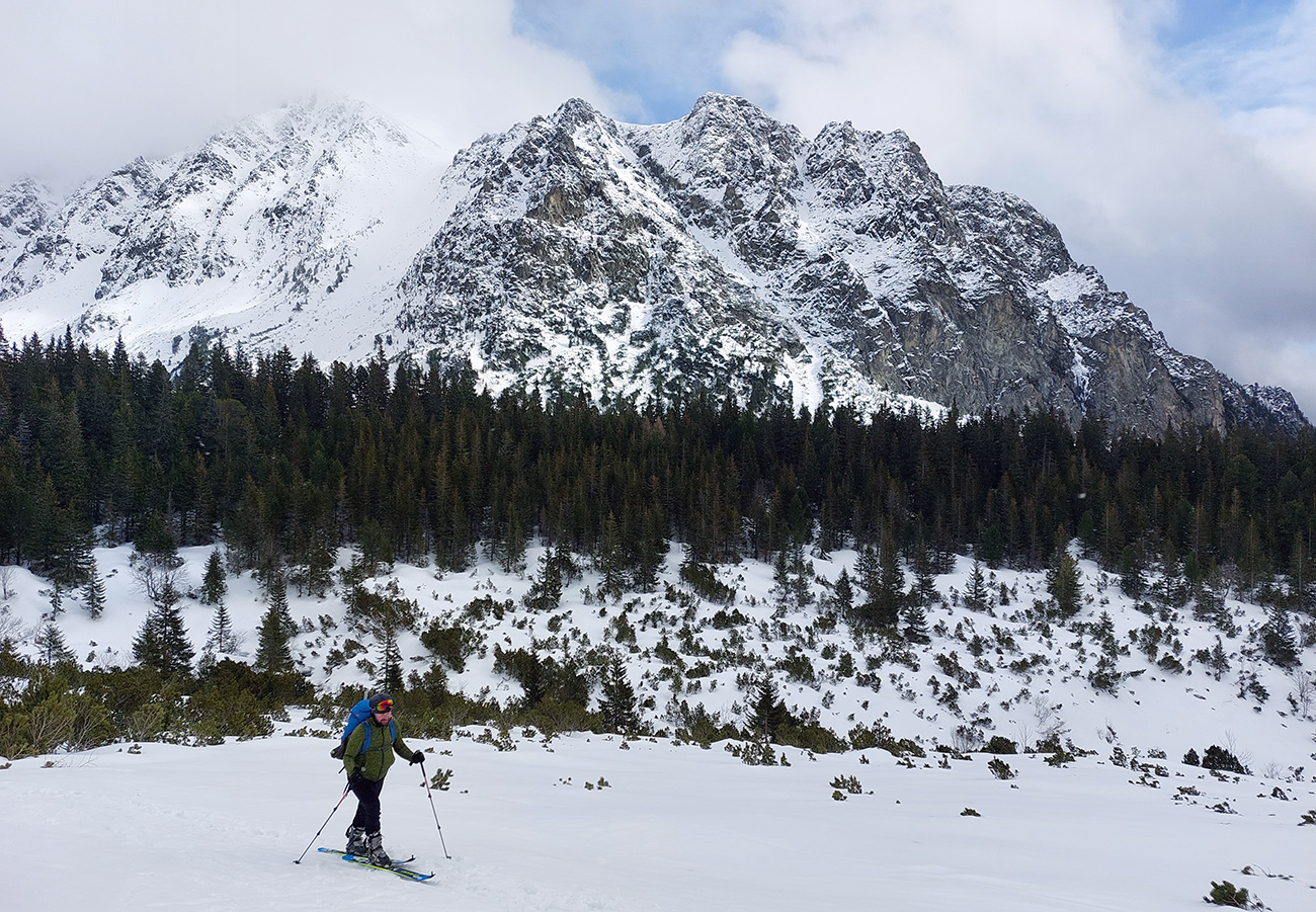 Táto superteplá zima núti ísť za snehom stále vyššie, ale stále sa dá nájsť aj ten dobrý. Tatry sú záchrana a teraz po prepršanom piatku a čiastočne aj sobote (aj vo výške Štrbského plesa) prišla jasná noc, tak sme ráno naskakovali do lyží pod Triganom (smer Popradské pleso) na betónový, viac hnedý ako biely, a poriadne hlučný podklad. Ale stále sa dá od smerovníka pri ceste. Zimný chodník (najmä zjazdík spod Triganu) ľadový, utrpenie pre pásy. Kúsok po ceste na Popradské ples – čistý ľad. Rachot spod lyží sa začal konečne zmierňovať až pri stúpaní lesom do Mengusovskej. A začali sa otvárať aj pohľady na čerstvé a poriadne veľké splazy až malé lavínky pod Patriou. Ktoré sa ale nedoplazili až na letný chodník, tak vyzeral byť bezpečný. Čo mohlo a malo, hádam už spadlo: