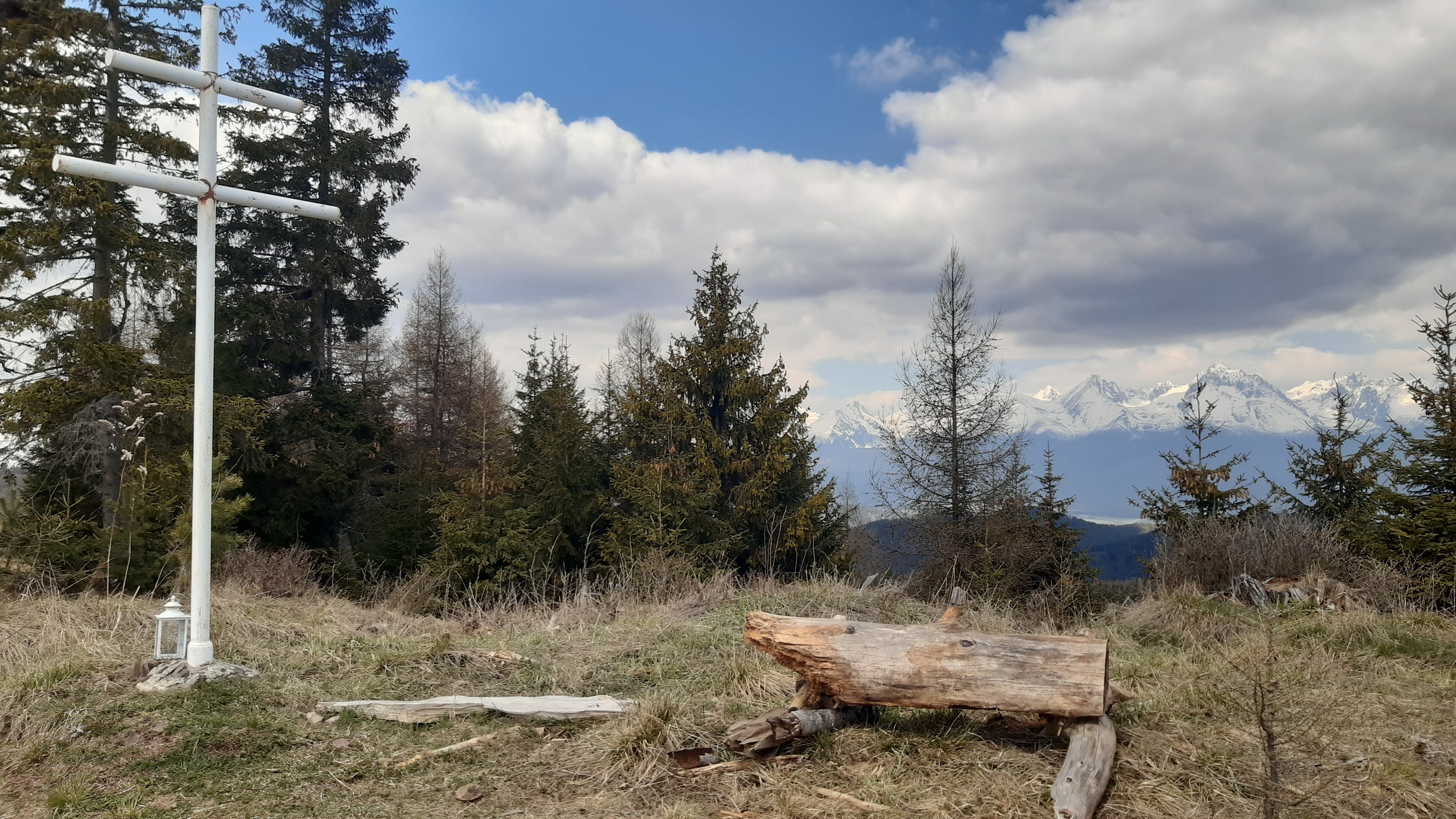 Miestami už stromčekami zarastajúca hrebeňová cesta končíe až na Krížovom vrchu. S dvojkrížom čuduj sa svete. Výhľady stále zajebisté, len my, čo tu chodíme už roky badáme ako mladina naberá na výške. Vy čo by ste chceli ešte zažiť výhľady na Tatry v plnej paráde tak máte ešte pár rokov a potom na nejaký čas bude zase šmitec. Bude treba čakať na ďalšiu kalamitu a to môže trvať. Nové lesy už budú viac premiešané ako tie minulé a tak verím, že aj odolnejšie.