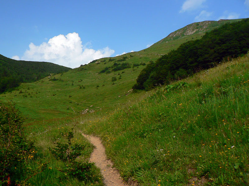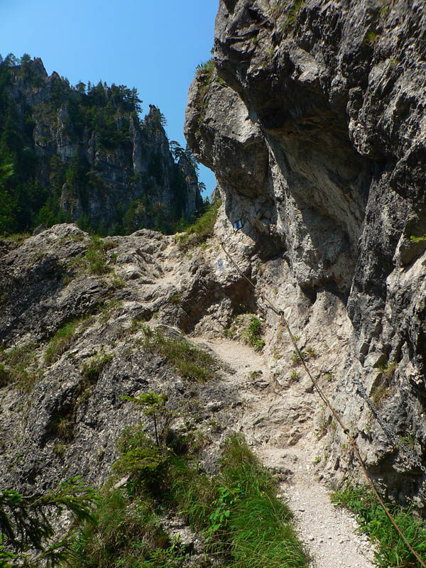 Ten prvý výšľap (na Kraviarske) bol asi najpríjemnejší, s výhľadmi a popri kosovke. Nasledoval kamenitý otvorený hrebienok, zošup do lesa a prudko hore lesom na zalesnené Žitné. Odtiaľ ešte prudší hlineno-kamenný zostup a následné strmé kľučkovanie pomedzi ostré skaly na Baraniarky. Miestami bolo treba zapnúť náhon na všetky štyri. Tu sa ale aj pekné miesta našli, dokonca nejaké reťaze a zábradlíčka. Do sedla Príslop to bolo asi najdlhšie a najhoršie z kopca. Súcitil som s ľuďmi, ktorí sa asi bez väčšej prípravy vybrali opačným smerom, keď sa ma pýtali ako je to ešte ďaleko. A kam? "K lanovce!" Znela odpoveď. Tak som pre istotu len zaželal šťastnú cestu :-) Lebo väčšina sa netvárila šťastne pri tom výstupe :-)