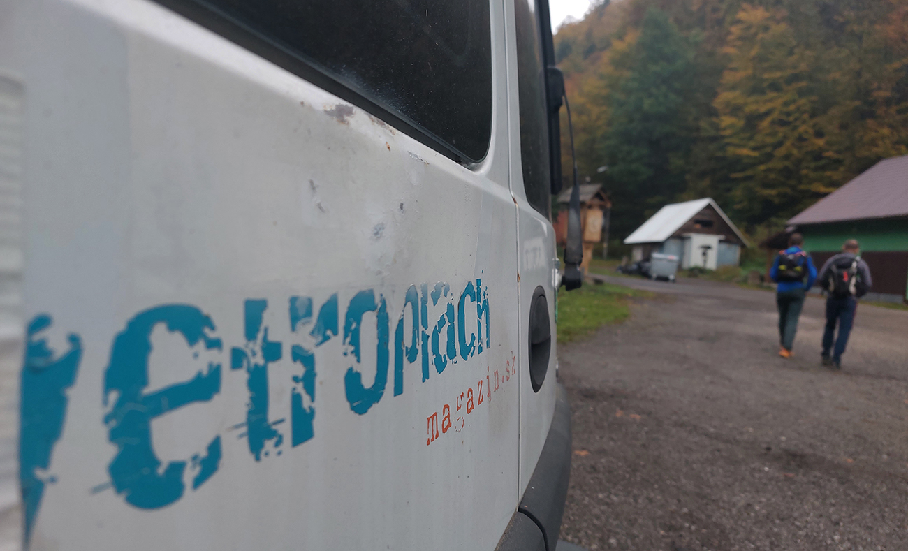 Využívame povinnú „služobnú cestu“ do BB a po vybavení nutných povinností (raňajky a tak...) sa traja vezieme na „redakčnú poradu“ z mesta na sever. Mohli sme byť štyria, ale „slečna dopisovateľka“ nás ohrdla a uprednostnila rýpanie v zemi na záhrade, tak jej treba... Parkujeme pri lesnej správe nad Dolným Harmancom, v spoločnosti ťažkej lesnej techniky a starého, obézneho retrievera, ktorý najskôr paroduje pokus o zaháňanie votrelcov štekotom, ale potom by sa nechal aj ukradnúť. Je to prítulná mačka, nie pes :-)
