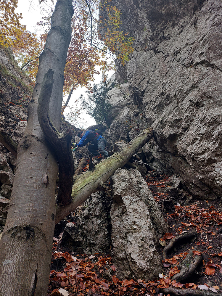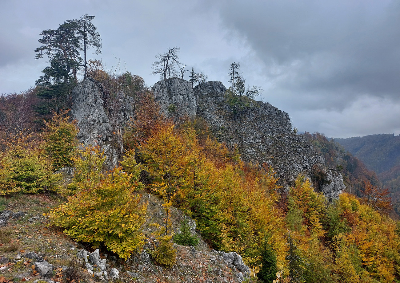 Sto rokov chodím vlakom z Turca do Banskej Bystrice, sto rokov z neho obdivujem skalné steny nad Bystrickou dolinou (medzi stanicami Harmanec – jaskyňa a Dolný Harmanec) a sto rokov si hovorím, že sa na ne raz pozriem zblízka. Tak konečne prišla príležitosť, posilnená reportážou v telke, kde aj prístupový chodníček ukázali. Jeden z vari troch – lebo je to síce v národnom parku, ale podľa stôp po ťažbe dreva je to zároveň v intenzívne obhospodarovanom území, takže nejaký pohyb mimo chodníkov nás absolútne nemusí trápiť. A navyše je to oficiálne a celoročne povolená lezecká oblasť. Podľa tej reportáže relatívne mladá, ale asi tam už Gipsy s Janom Bankom za svojich mladých čias nejaké cesty naťahali. Podľa portálu climb.sk je tam deväť sektorov so 188 cestami, prevažne od 6 do 10. Nájdu sa aj jedenástky a päťky, dokonca zoznam obsahuje aj jednu štvorku. Veľa je toho pod prevismi, takže sucho aj za dažďa.