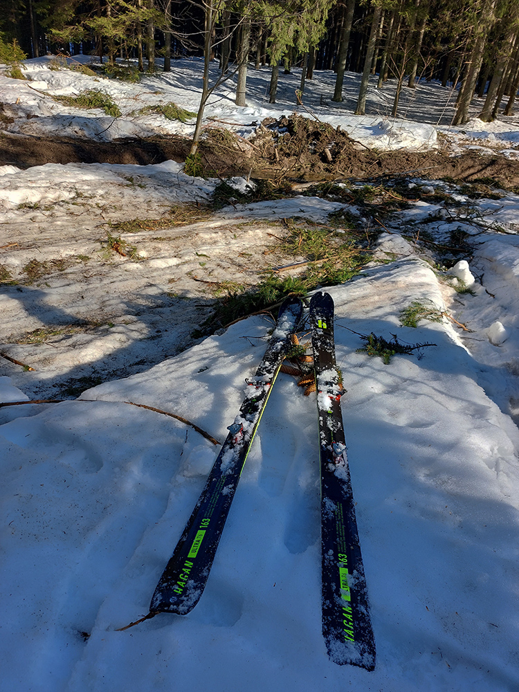 A to najlepšie na koniec. Na úvod konca síce skok cez ľadový prevej na drsný betón (úplne na vršok Latiborskej sme ani nešli), no ten sa po pár oblúkoch zmenil na parádny, konzistentný sneh, prechádzajúci až do takmer neuveriteľného, jemného, premrznutého prášku. A pretože tadeto veľa ľudí neprešlo, našli sme si aj my to svoje, nepočmárané. No rozkoš jednoducho neočakávaná!