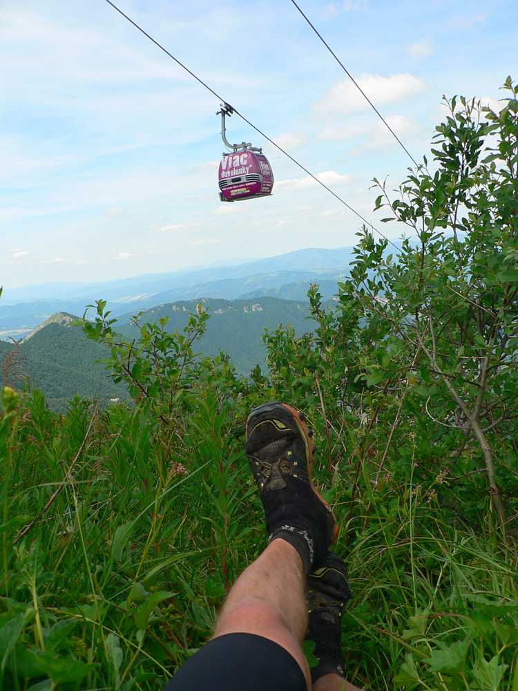 Ale veď pohodkáá nééé? Ešte sme len na začiatku, užívame. Od chaty (asi najvyrehotanejšia kontrola) do Snilovského sedla a ešte jedno také kolečko – dole do Vrátnej a nazad hore na hrebeň, pod Kriváň. Kluskám si popod lanovku a zrazu PRÁSK!!! Také kŕče do nôh, že ma hneď do žihľavy vykotilo. Musela to byť dobrá komédia pre ľudí v tých kabínkach, ako som sa tam pod nimi na zemi mrvil a skrúcal. Pre mňa to bola prvá psychovýzva: skončím už tu, na nejakom 60. kiláku? Je to následok profilu trate alebo ešte únava po Hriňovskej stovke?