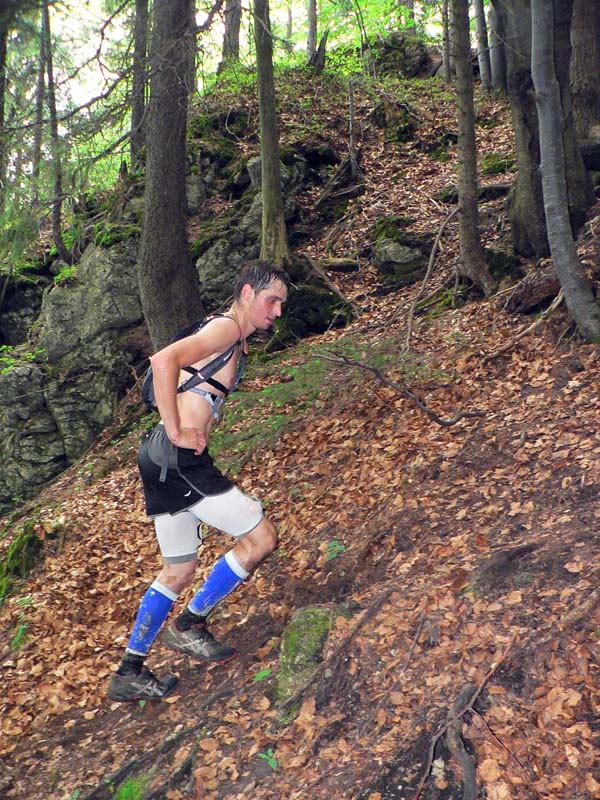 Až za Zázrivou to začalo: ešte stále „mierne hore“ do sedla Príslop nad Bielou, ale za ním najbrutálnejšie stúpanie celej trasy na Malý Rozsutec. Hneď nato niečo podobné na Veľký Rozsutec, ďalšie na Stoh a miernejšie, ale o dosť dlhšie na Chleb. Škrtnúť kontrolu a davaj nazad pod Hromové a traverzom na chatu pod Chlebom. Z nej po polievočke a čajíku (pre účastníkov prednostne, super!!!) pokračovanie hrebeňovej klasiky cez Kriváne na Suchý a „noholomný“ zostup do Strečna, na najnižší bod trasy.