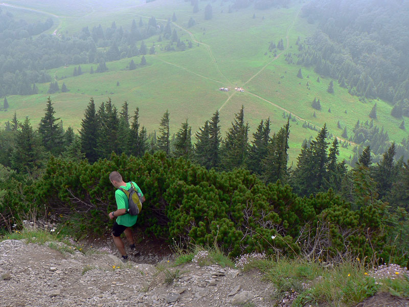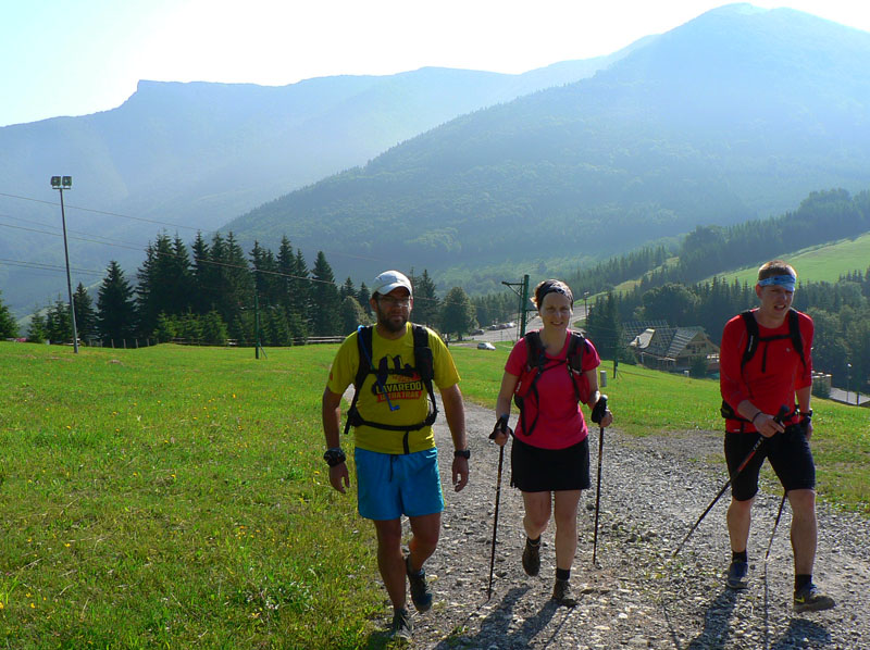 Tam dorazilo v limite asi 50, už značne zdevastovaných (a nie veľmi voňavých) šialencov. Asi desiatim z nich pohľad na švédske stoly a výhľad na nasledujúcich 1000 výškových „na jeden šup“ na Minčol zobrali posledný morál. Ostatní (z toho 4 ženy) sa dali do boja najprv s nekonečnou zvážnicou, potom s hôľnymi chodníkmi medzi Minčolom, Krížavou a Hornou Lúkou a nakoniec so sériou prudkých a krátkych „brdkov“ v hustých lesoch až po Kľak. Lahôdky Lúčanskej Fatry: zostup z Hnilickej Kýčery, prerážanie krovím zarasteného chodníka (ako cez kefy v autoumyvárke), divné šuchotanie v temnom lese, čerstvý medvedí trus na chodníku a tak... Záverečnú delikatesu z Vríčanského sedla na Ostrú skalu si zapamätá každý na 120 percent :-)