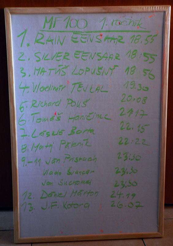 Na oblohe slovenského ultratrailu zažiarila nová hviezda a hneď treba povedať, že by si zaslúžila svietiť dlho a jasne. Pretože všetka česť Martinovi Drozdovi a Zuzke Gelnarovej, ktorí len vo dvojici dokázali vymyslieť, vybaviť, obtelefonovať, logisticky a inak zabezpečiť na prvý raz takmer bezchybnú akciu, aká u nás doteraz nemala obdobu. Aspoň parametrami: mierne nad 100km a mierne pod 7000 nastúpaných metrov. Len približne, lebo variantov bolo viac. Kto nevie o čo ide, nech sa kukne SEM, na stránku MF100. Limit 32 hodín tiež niečo napovie o náročnosti. Ale o presnosť až tak nešlo – skôr o profil zubatej píly, o brutálne stupáky, veľké prevýšenia a o jeden z najvýživnejších kopčekov na záver, keď už si niektorí mysleli, že to pôjde už len z kopca :-) Išlo aj o krásnu prírodu (ktorá síce ukázala aj svoju najhoršiu tvár...), nadšenie armády dobrovoľníkov na kontrolách (vďaka!) a celkovo o vydarený víkend – aj keď väčšina ceprov na hrebeni si o nás myslela úplne iné veci :-)