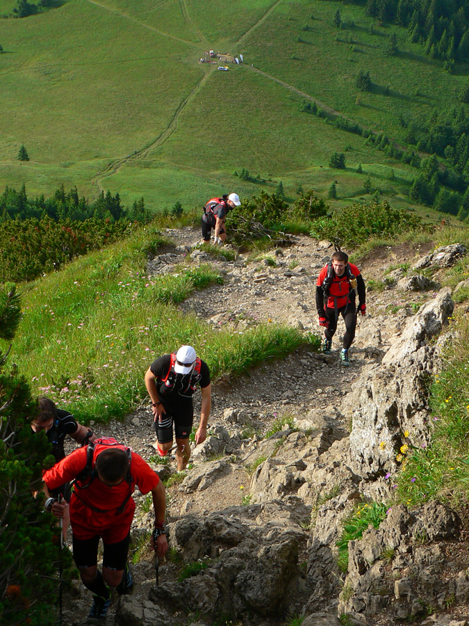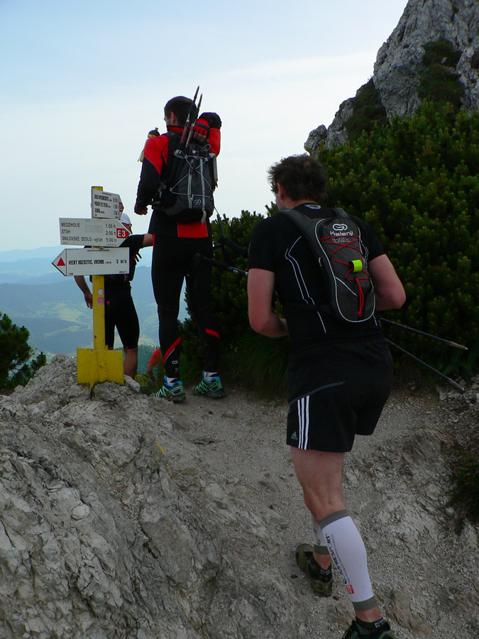 Viacerým tiež chýbal veľmi pekný úsek hrebeňa Stratenec - Suchý. Nahradený bol traverzom z juhu po žltej a následným „infarktovým“ výstupom nazad na Suchý. V traverze sa síce dalo bežať, ale väčšina by vraj ocenila zmenu rytmu a krásu skalného hrebeňa. Veď aj cez Rozsutec sme šli miestami po štyroch a na oveľa dlhšom úseku. Patrí to predsa k typickým znakom týchto miest.