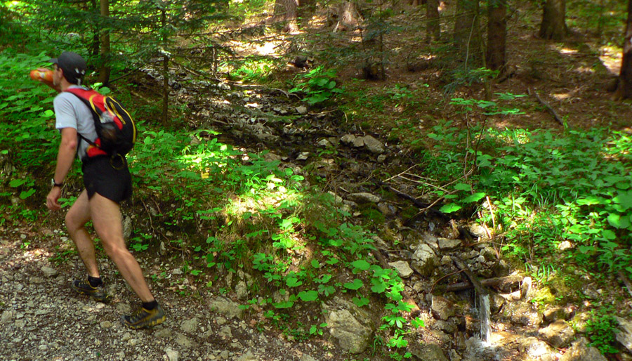 Čo ale bolo na tomto poslednom úseku najlepšie, to bol výškový profil - zaradiť takúto brutalitu na záver už tak profilovo najťažšej slovenskej stovky, to chce riadnu odvahu :-) Alebo škodoradosť? :-))) Stúpanie na Suchý? Rozsutec po štvornožky? Zostup z Hnilickej Kýčery? Výstup na Kľak? Len biedne kopčeky!!! Veď aj do cieľa sa klesalo po zjazdovke so sklonom tatranského žľabu :-) Po ktorej sa bolo treba predtým vyplaziť samozrejme aj smerom hore. A v kombinácii s mokrou trávou a blatkom, no mňam... Dodnes som mal pocit, že na zbehy strmých svahov už mám nohy dostatočne naučené. Aktuálne pocity v predných stehenných svaloch ma ale veľmi intenzívne vyvádzajú z omylu.