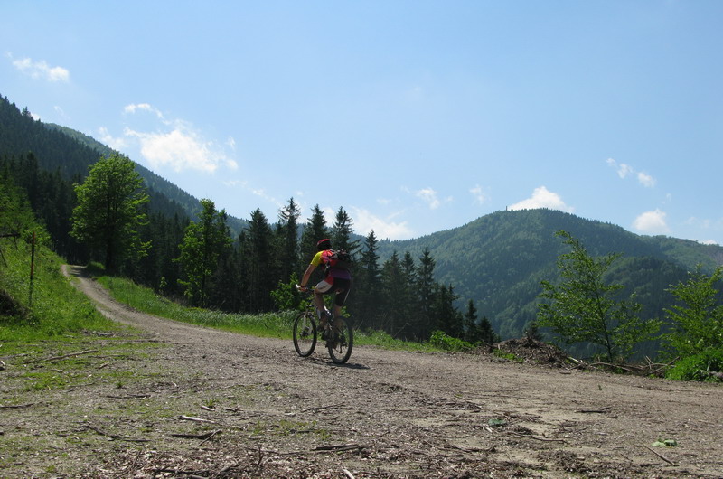 Naberám výšku po vďačnej zvážnici, na tento úkon ich mám rád. V sedle Javorina som asi za hodinku a pokračujem strmo hore vľavo smer Sarančníky. Na Minčol je to podľa značky 1h.25min. Odpájam sa z cyklotrasy na červenú značku a začínam tlačiť. Som na to pripravený a aj zvyknutý.