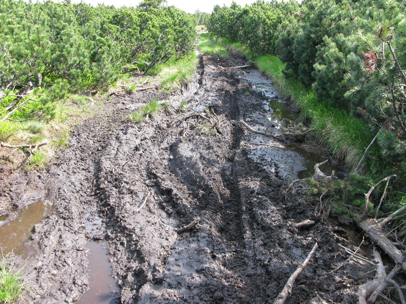 V momente ako som sa vynoril z lesa na čistinku a ocitol som sa na vybagrovanej ceste som prestal porušovať zákon, pomyslím si ironicky. Do cesty sa mi postaví veľká kaluž. Keby ste sa pokúsili vyrobiť kvalitnejšie blato nemáte šancu oproti zmesi namiešanej lesným traktorom. Podarí sa mi ju obísť. Nemám chuť ani nasadnúť na bycikel. Podklad je úplne rozomletý.