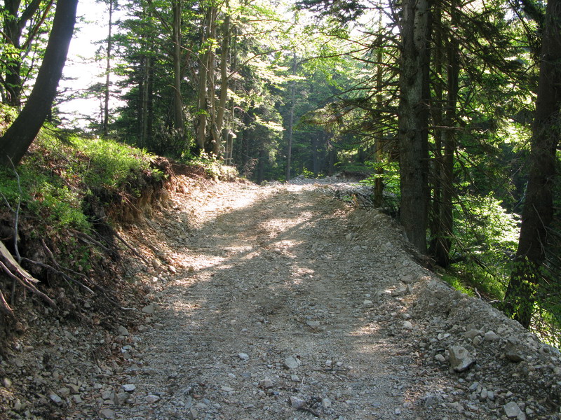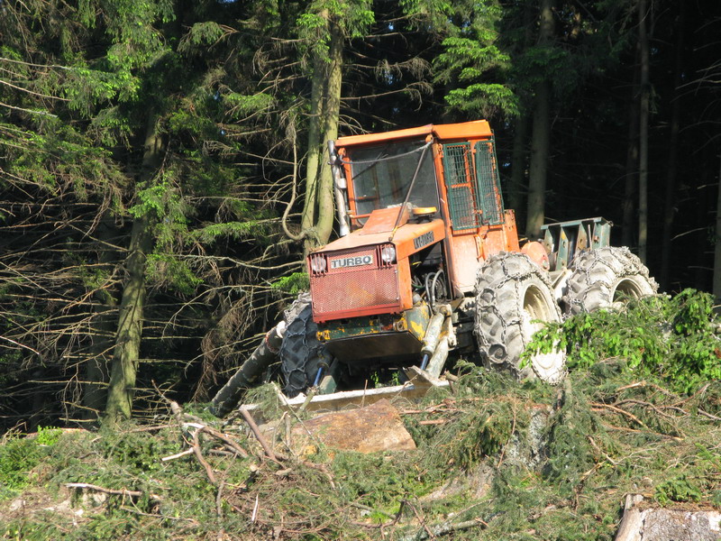 Vynáram sa na čistinke a tu zrazu šok!! Nemôžem uveriť vlastným očiam. Z nádherného chodníčka sa tu stala široká cesta, čerstvo vytvorená bagrom. Stojím hľadiac na tú spúšť a až po chvíli sa púšťam ďalej. Ciest pribúda, sú tu rúbaniská po ťažbe. Podľa pňov usudzujem, že je to regulérna ťažba. Vyrúbané sú celé prieseky. Povrčať s motorovou pílou, zapriahnuť traktor a peniaze sú na stole - aké jednoduché, kým je čo rúbať.