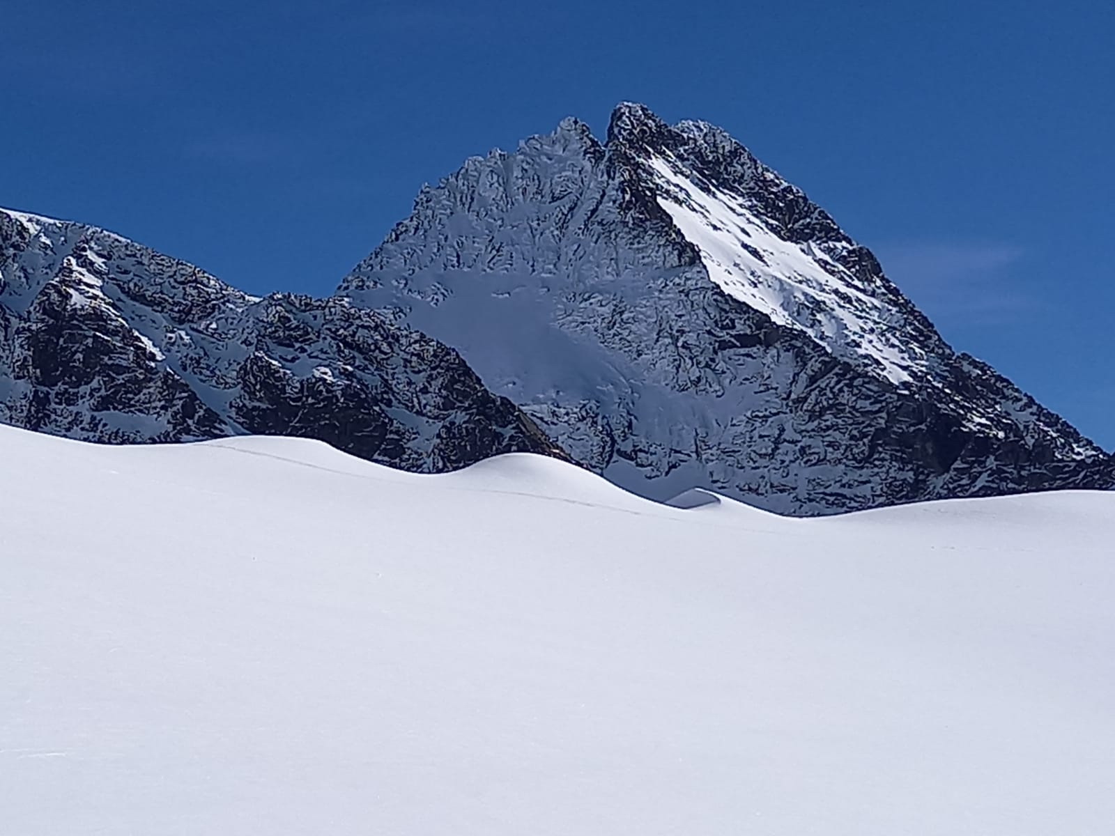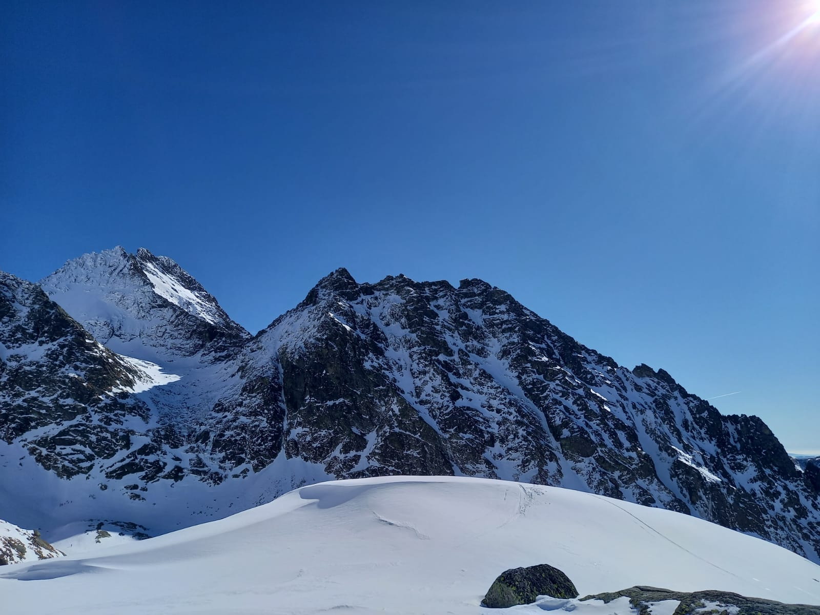 Mierny vietor príjemne ochladzoval, úseky bez neho už začínalo byť nepríjemne horúco. Sneh na slnku postupne zmäkol, miestami ale ostával tvrdý a ľadový, je ho málo ako v podstate po celú zimu.