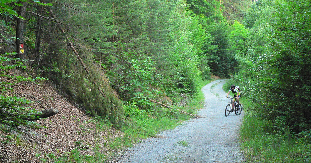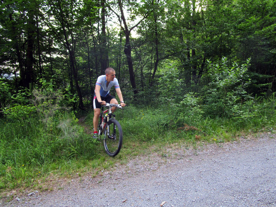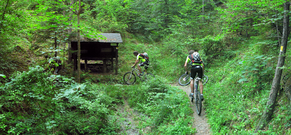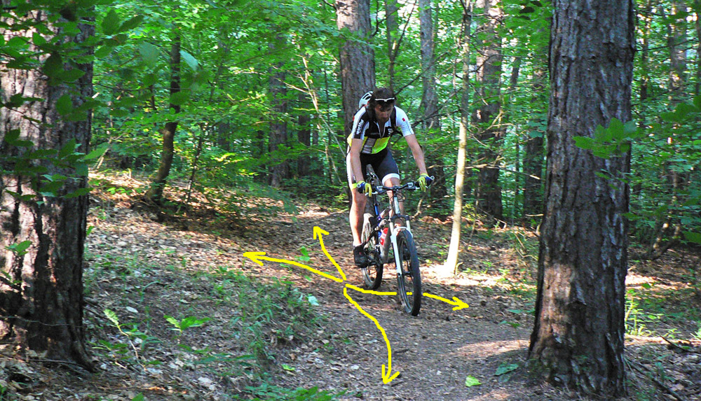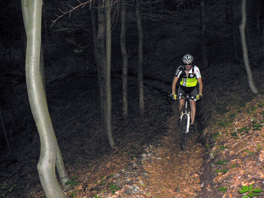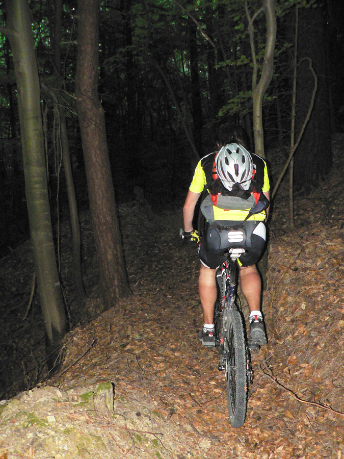 Jeho začiatok je trochu strmší, užší, po júnových búrkach už aj vodou načatý. Ako na feratách: trochu náročnejší, nech hneď na úvod odradí slabšie nátury - pre ich vlastné dobro :-) To ale len zatiaľ, aby na chodníku nebola veľká premávka, kým nie je dokončený. Po takomto úvode už ale nasleduje hravé hore-dolu-doprava-doľava. V smere jazdy samozrejme viac dole ako hore, doprava si treba dávať viac pozor ako doľava. Lebo svah pod chodníkom je niekedy dosť strmý a trčí z neho všeličo nepríjemné. Ako v lese. V smere jazdy preto, lebo všetky single sú vymyslené ako jednosmerné. Aby sa v protismere nestretli dvaja bajkeri – s pešiakom sa dá predsa len lepšie vyhnúť. Postupne všade pribudnú tabule, ukazujúce smer a vyzývajúce na ohľaduplnosť. Inak prvá polovica trailu je pohodovejšia, druhá trošíčku rýchlejšia a technickejšia, trčí tam napríklad viac koreňov: