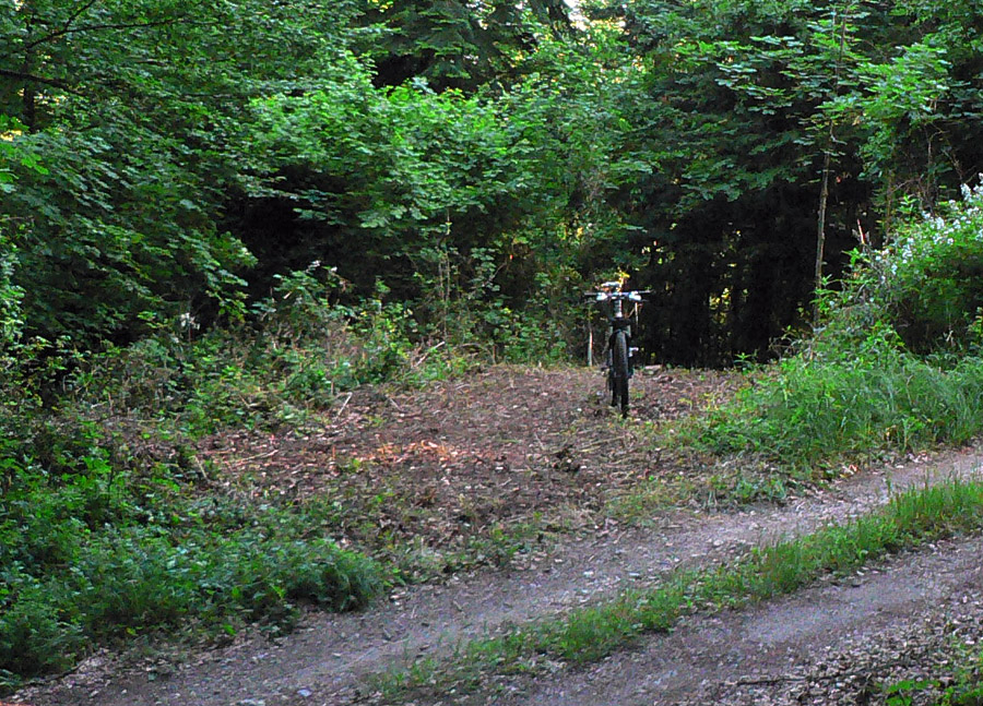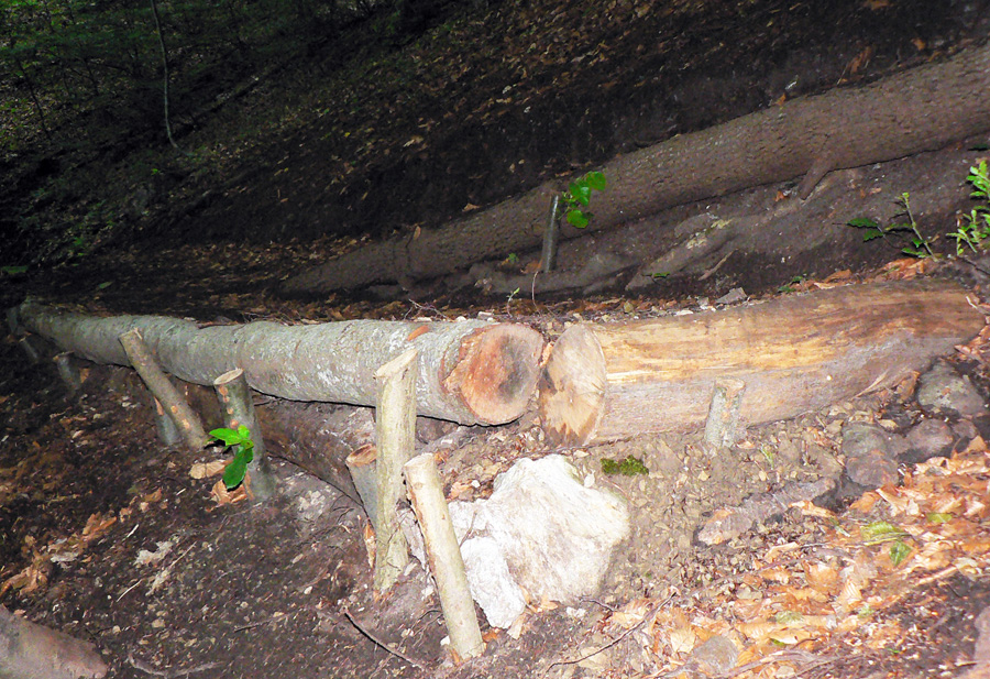 Chodník je parádny, dlhý (tak ho aj volajú), vidieť na ňom kus dobre odvedenej roboty. Veľkým oblúkom obchádza celú dolinu. Postupne ho chalani budú dolaďovať a pridávať aj nejaké technické prvky. Na konci, na takej „kvázirovinke“, to zvádza pokračovať rovno po miestnom červenom značení - ale neodporúčam, aj keď tade sa dá zísť do doliny priamo po spádnici. O kúsok nižšie (po niekoľkých serpentínkach) by bol problém bajk aj preniesť. Zatiaľ treba odbočiť na ten menej nápadný chodníček doľava hore a po niekoľkých desiatkach strmších metrov príde vynorenie na konci zvážnice na Lackovom Grúni, priamo pri krmelcoch: