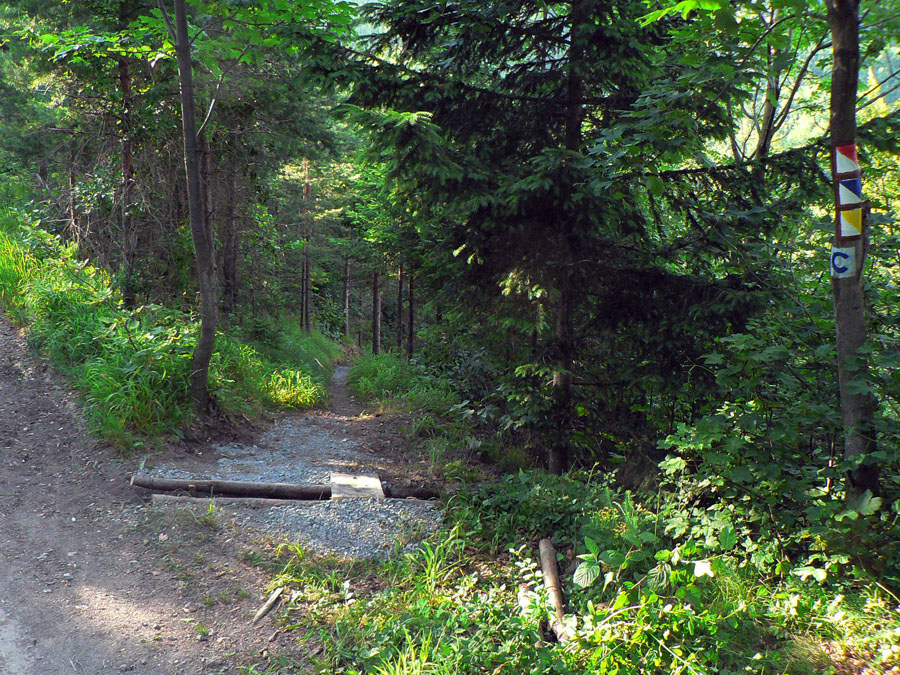 To je zatiaľ provizórium. Chodník po dokončení povedie ešte nejaké stovky metrov traverzom, kým sa napojí na zvážnicu (Aby si bajkeri a divá zver pri tých krmelcoch neskákali do cesty.). Potom už je to do doliny, na križovatku Machútovo, len chvíľa - rýchlo a pohodlne po ceste. Dole pozor na rampu, býva väčšinou zavretá. A hore na chodníku pozor pred každou zákrutou - nielen divá zver v srsti odetá, ale aj tá v maratónkach obutá sa tu motá :-)
