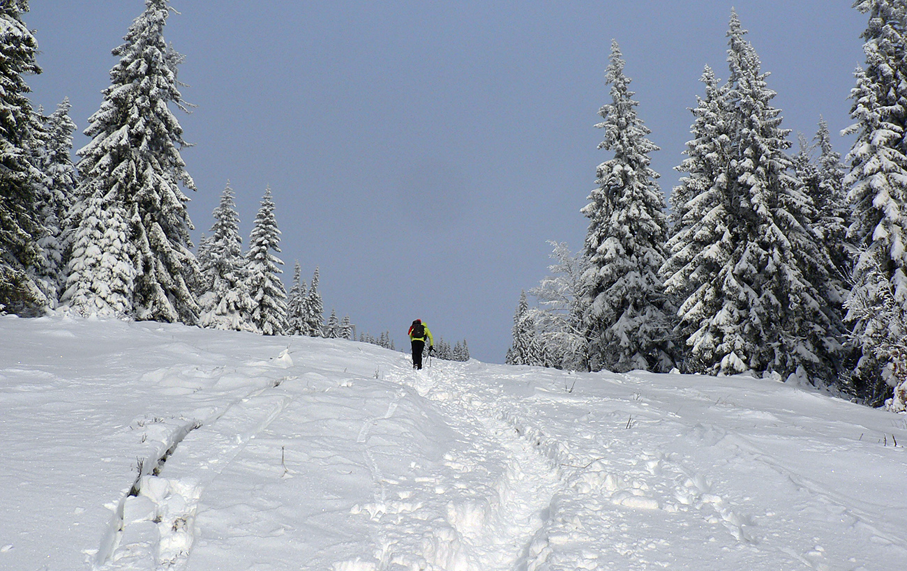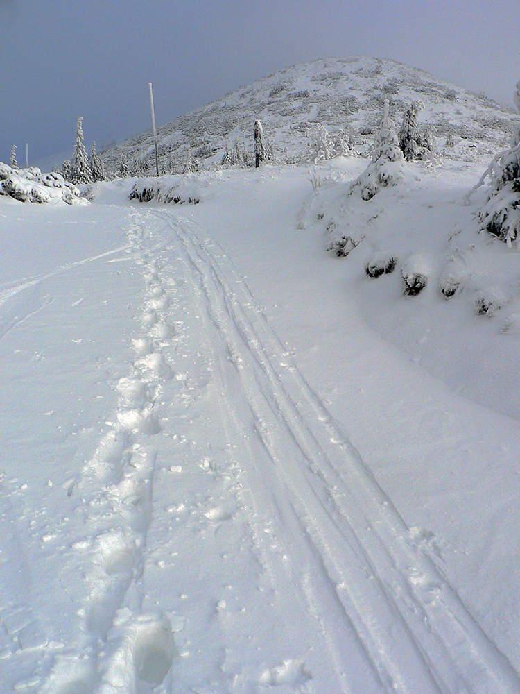 Začína nová sezóna skialpových aktuálov, tak tu je hneď jeden zo zázračnej lokality pod Chlebom malofatranským. Lebo ak v Tatrách padne centimeter, tu desať – len to sneženie musí ísť zo správneho smeru. Tak aj teraz. Prišlo od západu – severozápadu koncom novembra, po ňom zo dva dni odmäk a z piatka na sobotu to všetko zamrzlo „na kosť“ a na betón a na kameň. Takže dole slušný základ a ľadová kôrka, len ju prikryť. Na kamaňačkách by to šlo hore kopcom pomedzi krtince v podstate od posledných domov Šútova. Cesta na Zajacovú je betónovo-ľadová, chce to mäkké gumy alebo tvrdé reťaze, ale aj osobáky s nižším podvozkom vylezú. Nad Zajacovou aj nad drevoskladom je cesta rozmlátená autami z chaty, aj peši sa tade zle ide, to už radšej skratkou.