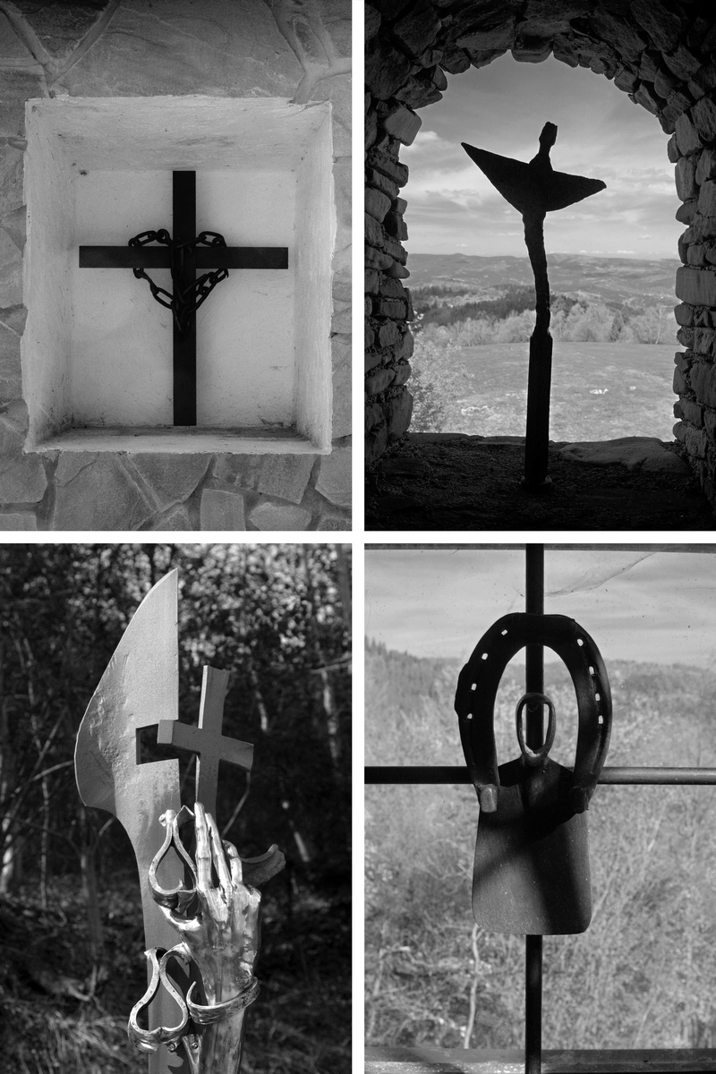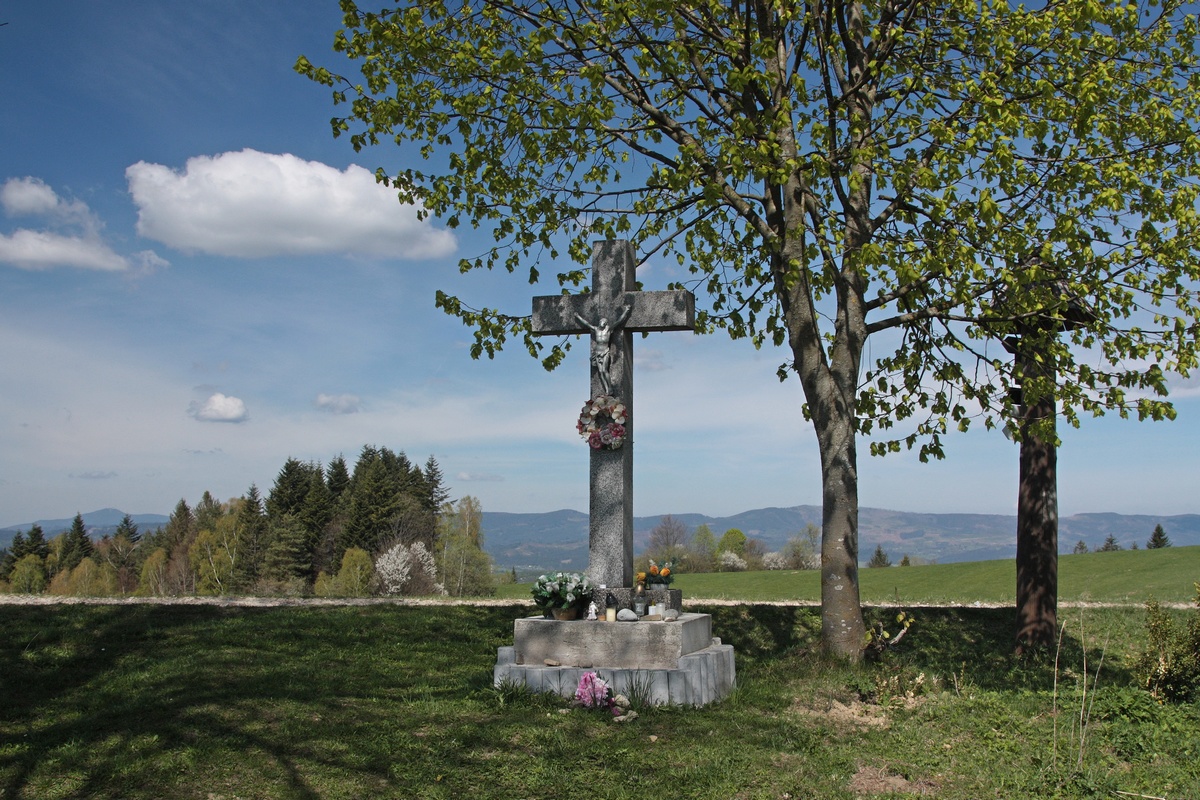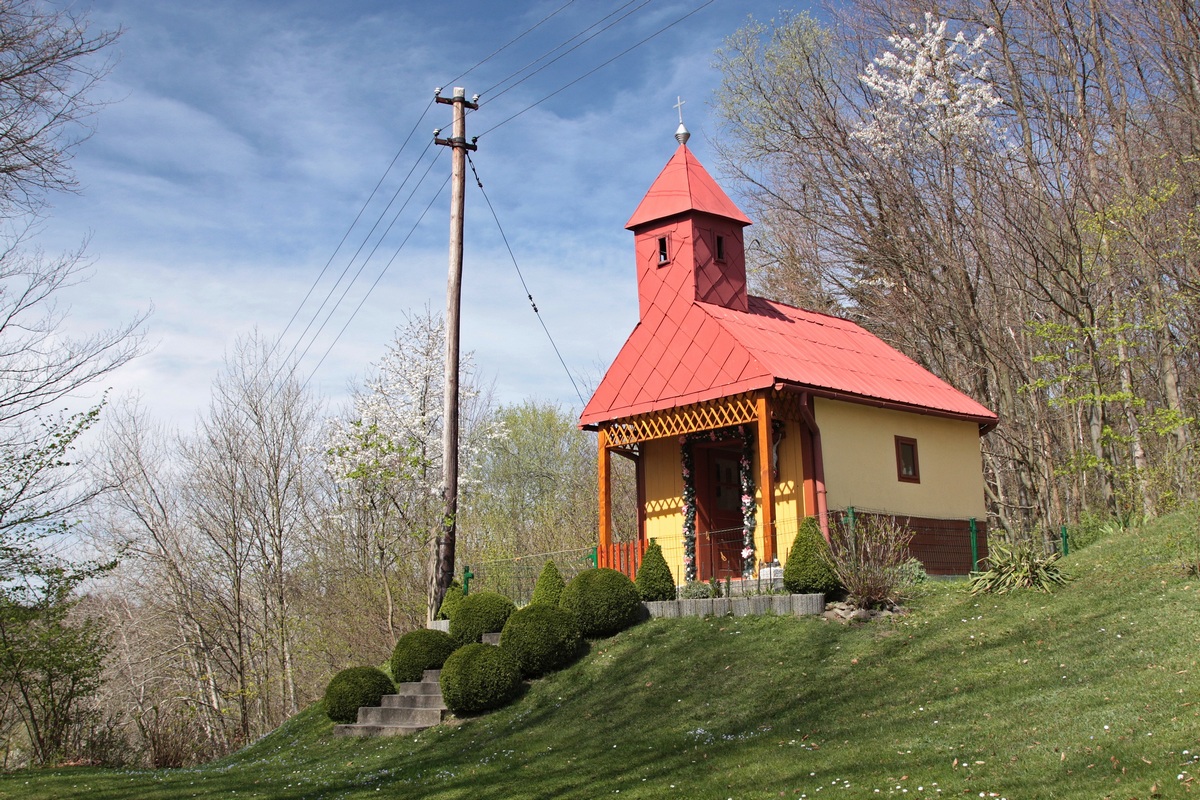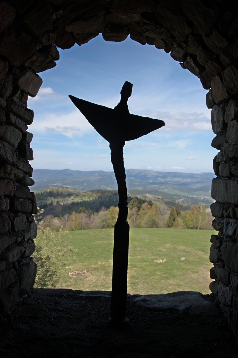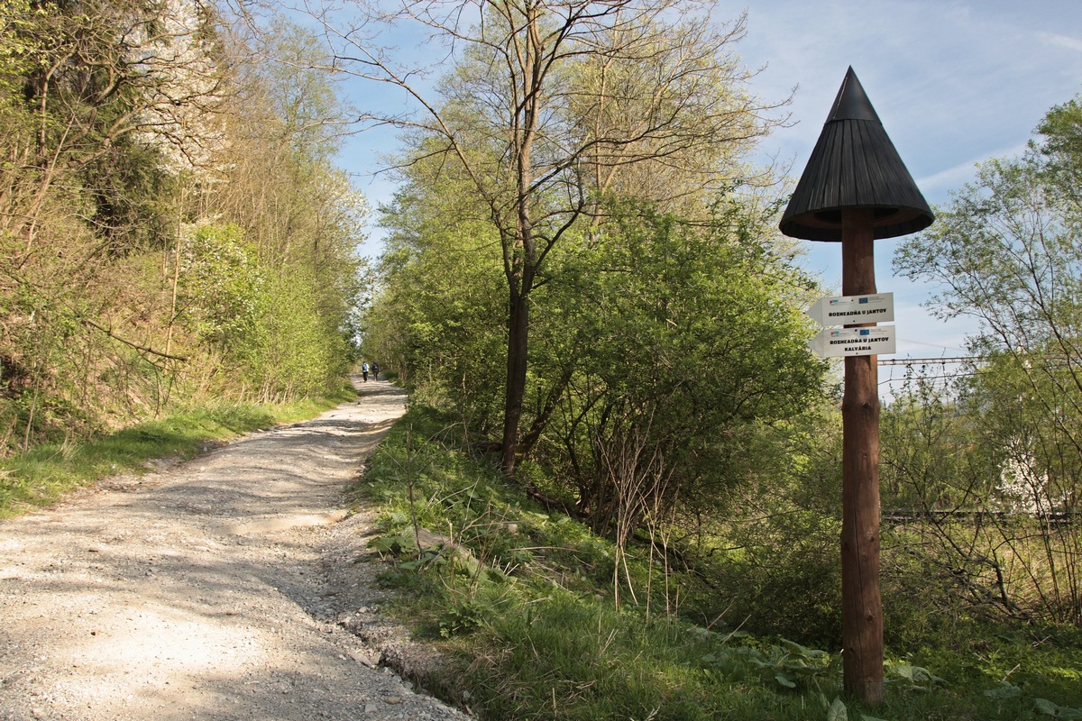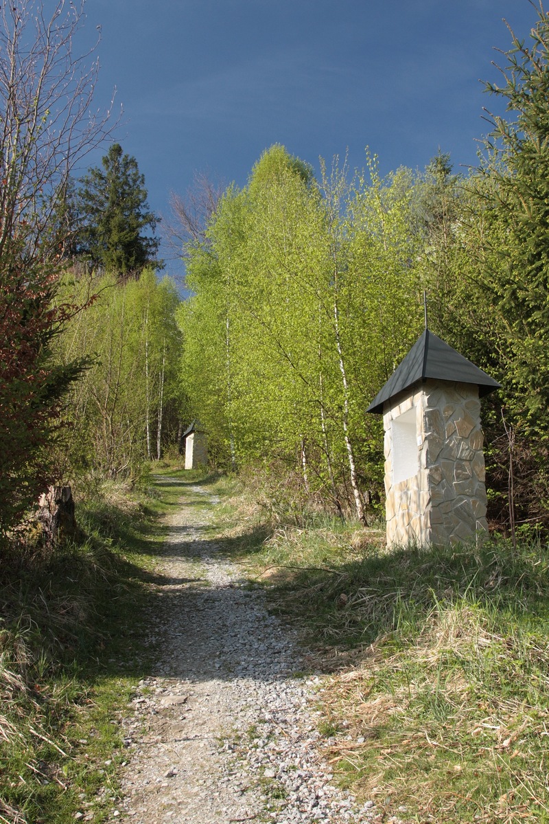 Ráno vyskakujem z osobáku v Krásne nad Kysucou. Výnimočne mi nevadí, že železničná stanica je ďaleko od centra obce, pretože tentokrát smerujem na opačnú stranu. Popri trati prechádzam ulicou Dielničky a kochám sa pohľadom do rozkvitnutých dvorov. Zo začiatku kopírujem modré miestne značenie smerujúce do osady u Jantov. V mieste, kde sa odpája z priameho smeru, ja pokračujem rovno. Mierim totižto na kalváriu. Za poslednými domami sa asfaltka zmení na lesnú zvážnicu a začne pomaly stúpať. Po chvíli sa z nej odpája výrazný chodník do ešte strmšieho svahu. Hneď na odbočke stojí prvá z kaplniek, ktoré lemujú krížovú cestu až po rozhľadňu. Nie som veriaca, ale estetika tejto kalvárie ma nenecháva chladnou. Vyhotovenie jednotlivých zastavení nesie rukopis známeho kysuckého architekta Stanislava Mikovčáka (jeho meno sa spája s viacerými rozhľadňami, či s Bystrickou cyklomagistrálou). Na výrobu plastík použil staré záhradné náradie, reťaze, zámky na dvere, podkovy a pod. a dýcha z nich umenie, nápad a symbolika.