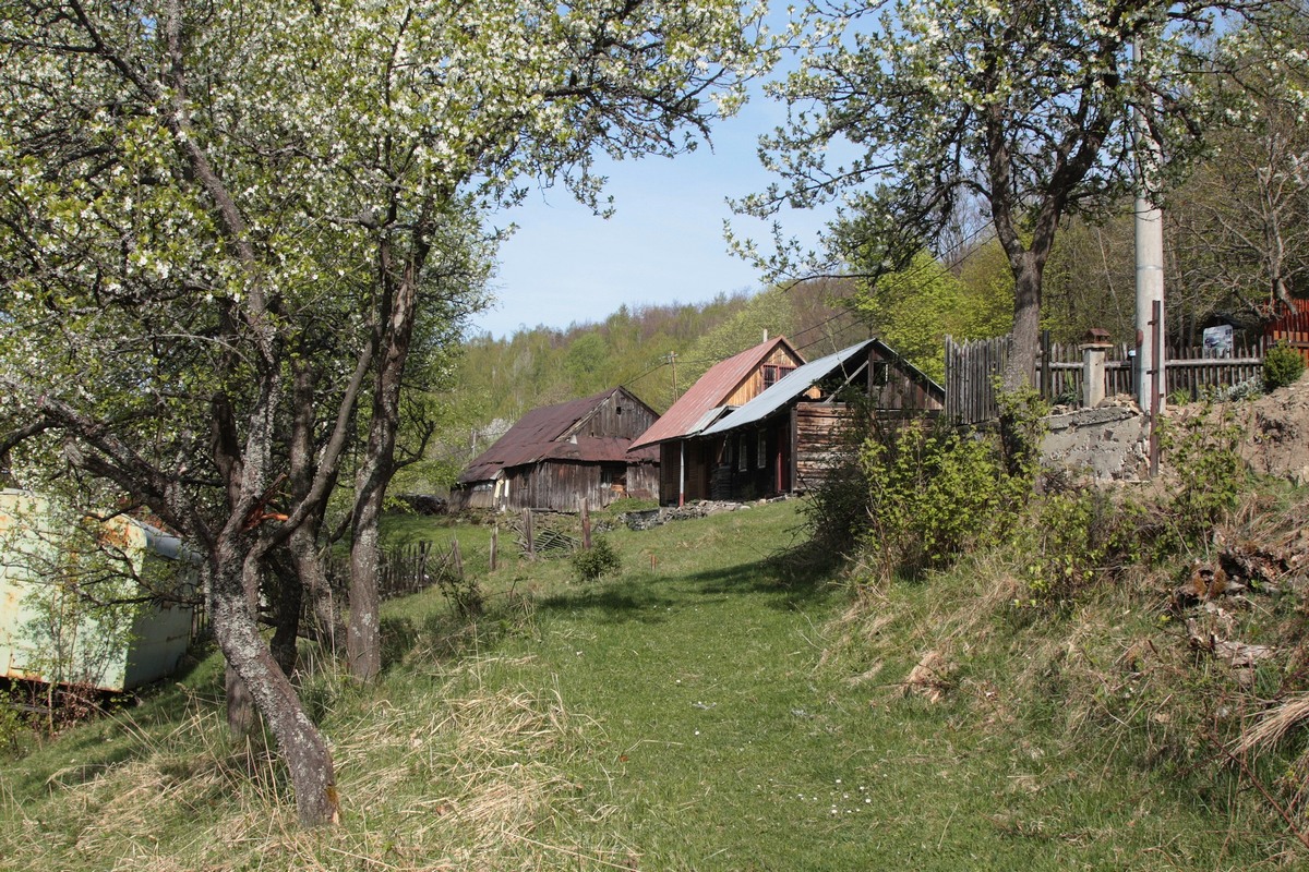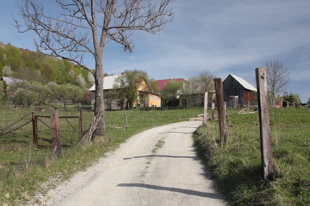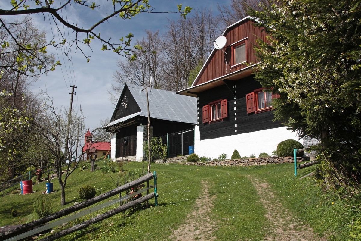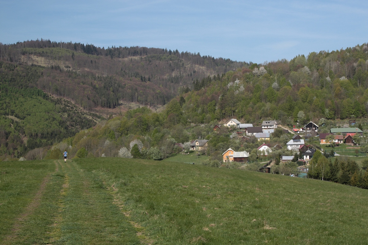 Od rozhľadne prechádzam krížom cez lúku do osady u Jantov. Tvoria ju prevažne víkendové domy a chaty a sobotný ruch tu frčí na plné obrátky. Kúsok za informačnou tabuľou sa nechávam zlákať nevýrazným chodníčkom, vedúcim strmo do lesa. Mal by ma skratkou priviesť do susednej osady. Prechádza mladým lesom cez početné terénne terasy. Ich pôvod a účel môžem len hádať, no zrejme sú pozostatkom niekdajšej poľnohospodárskej minulosti. Zakrátko vyliezam z lesa priamo medzi chalúpky osady U Grapov. Atmosféra je tu podstatne ospalejšia, akoby zastavená v čase.