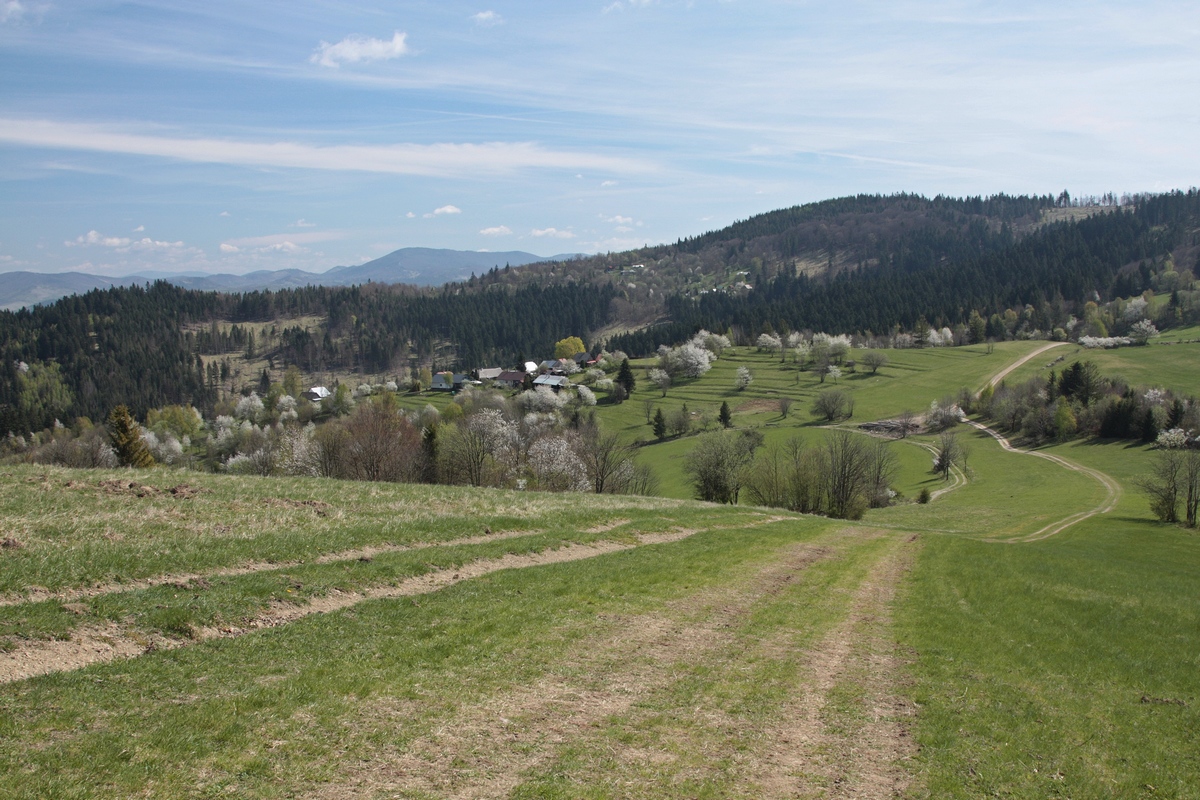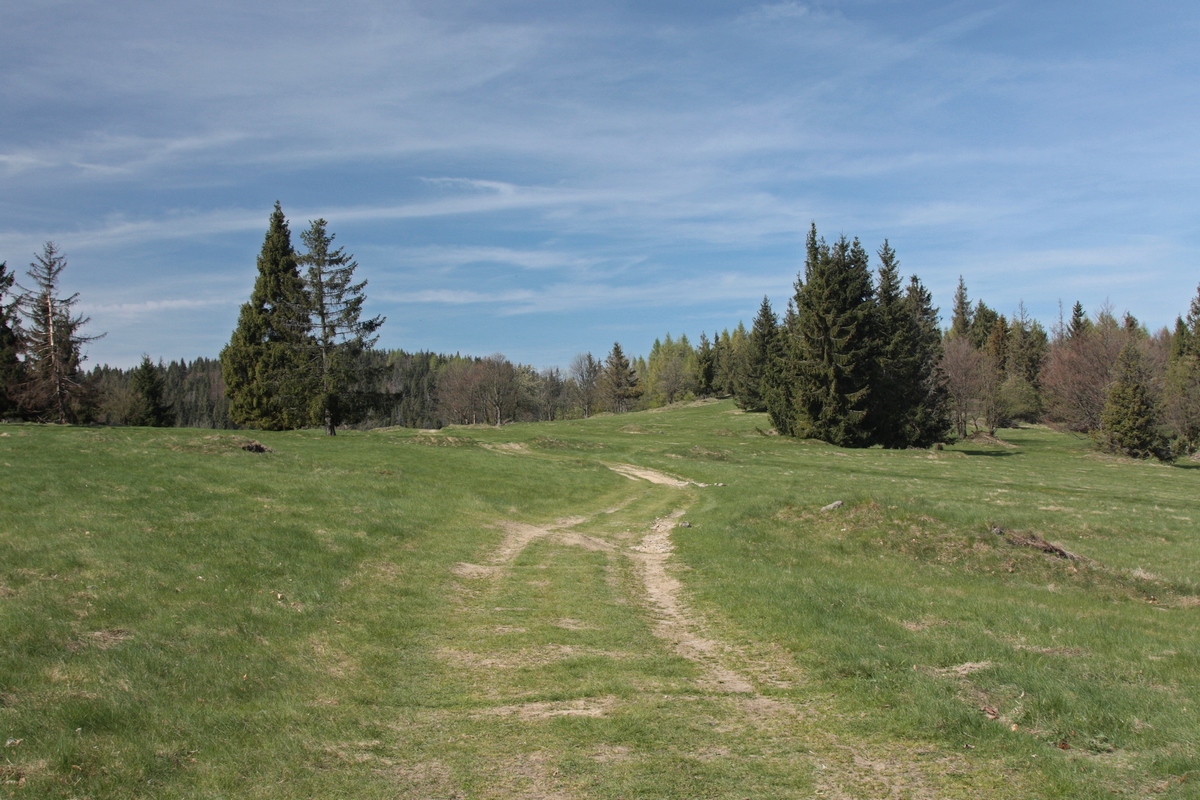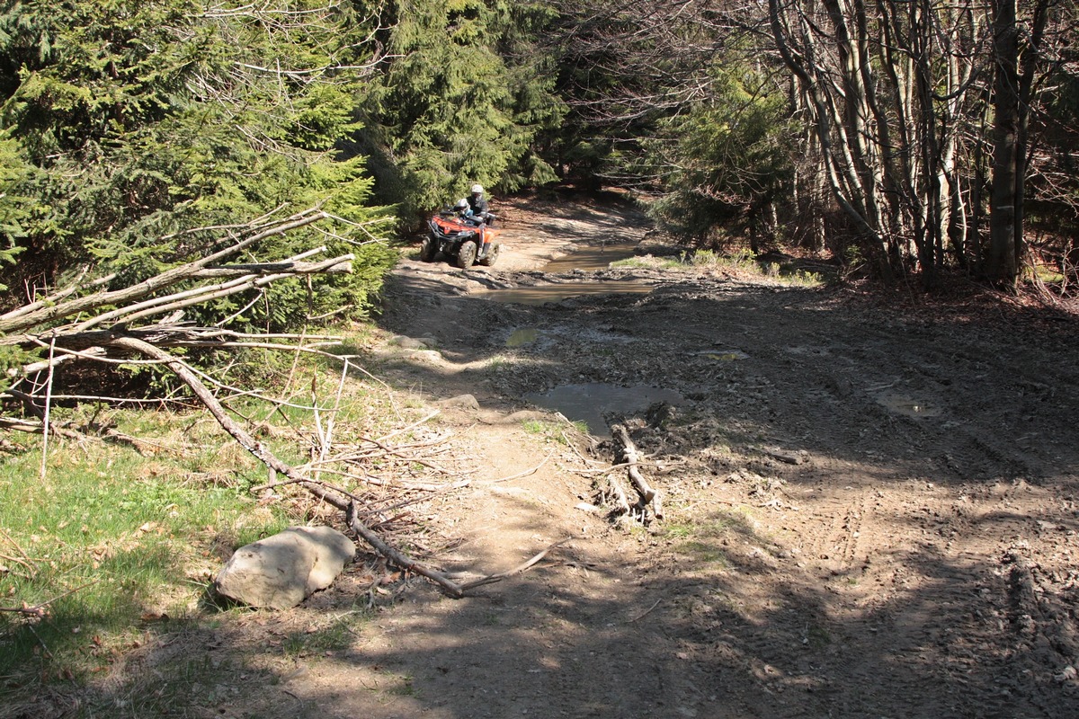 Po krátkej obednej pauze sa poberám ďalej. Ešte chvíľu sa motám červenou hrebeňovkou, až kým sa z nej pri ikonickom 6-nohom Potvorovi definitívne neodpojím. Vnáram sa do jediného úseku celej trasy s nepríjemne hustým, neprehľadným lesom. Veru si občas aj zapískam a zatlieskam. Ale viem, že civilizácia nie je ďaleko. Keď sa vedľa cesty objaví efektne naaranžované smetisko, som už len na skok od osady Mičekovci. Odtiaľto sa už len nechám unášať širokou lesnou cestou. Míňam ešte zopár samôt, načančanú kaplnku v osade U Bielych, aj prskajúce drôty vysokého napätia pod Kýčerkou... Hustota gýčových náboženských artefaktov popri ceste sa dostáva do čoraz výraznejšieho kontrastu so vzrastajúcou hustotou mototuristov. Motorkári, štvorkolkári, auto... Okolo rázcestníka Klimkovci sa pohybujem v permanentnom výfukovom opare. Úcta k Bohu verzus úcta k prírode. Smutný kysucký paradox...