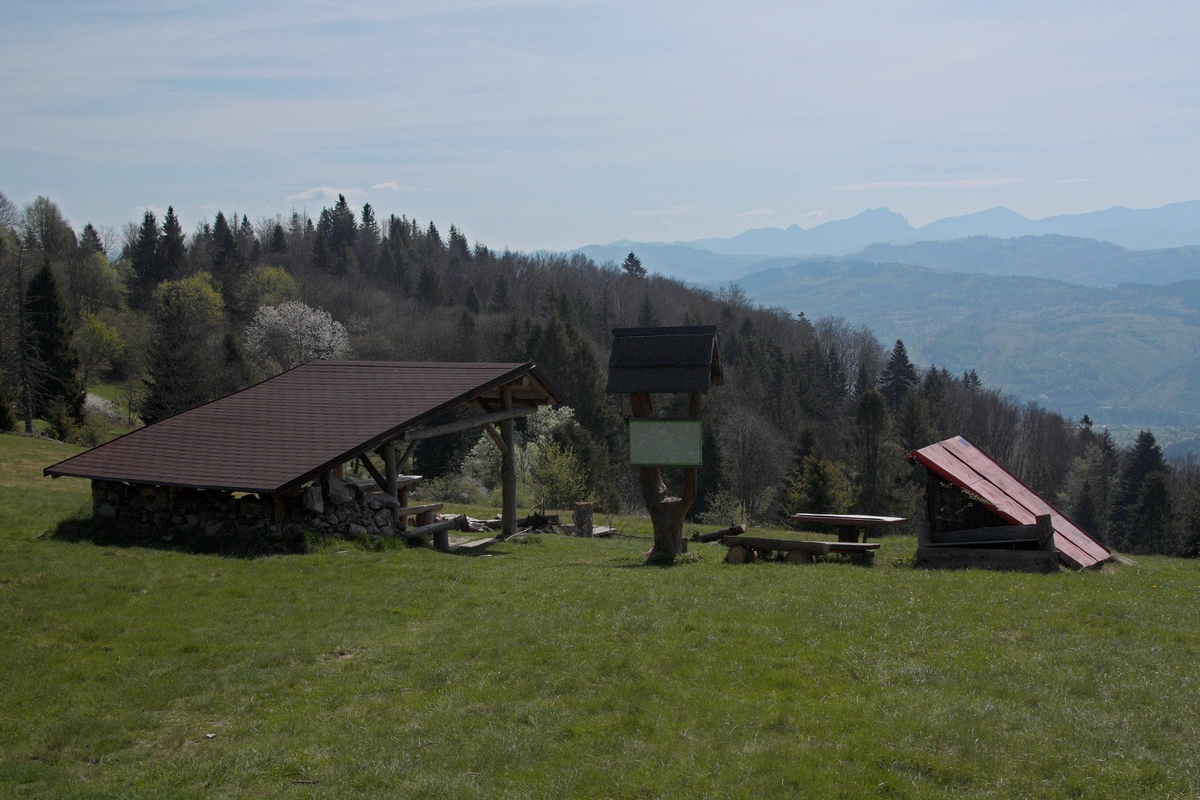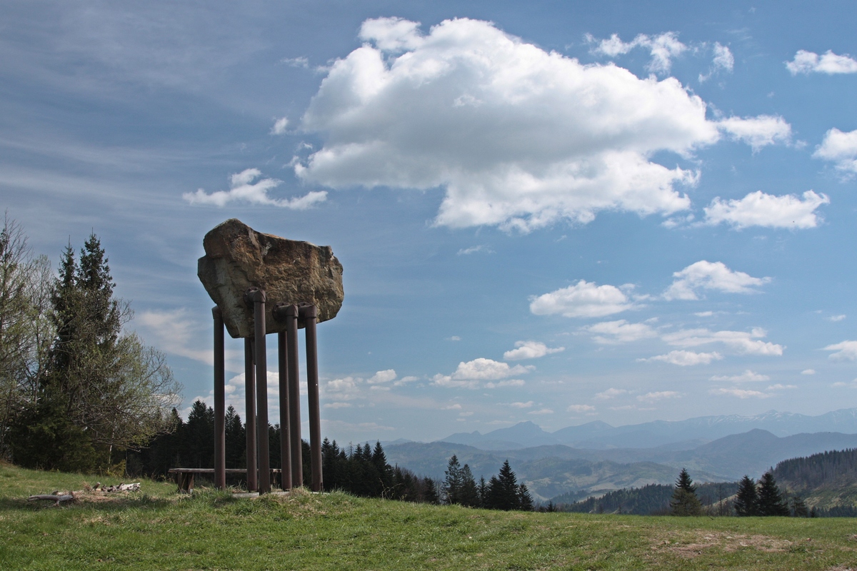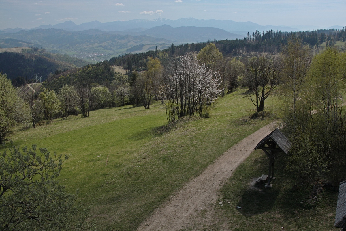 Od smerovníka Blažková mám už smer jasne určený ďalšou rozhľadňou na horizonte. Prechádzam zvlneným lúčnym terénom, ktorý je ako stvorený v lete na bicykel a v zime na bežky. K tomu neustále výhľady raz na jednu, raz na druhú stranu. Kochaciu idylku narúša len obraz kompletne vyrúbanej doliny Ochodničanky. Na jej hornom okraji, kúsok od turistickej značky, stojí luxusný megaposed. Vzhľadom na jeho konštrukčné vyhotovenie očakávam vnútri minimálne Jacuzzi. Správa miestnych lesov zjavne biedou netrpí. Bohužiaľ, je zamknutý... Radšej sa idem rozhľadieť na rozhľadňu na Marťákovom kopci (854 m.n.m.). Tá stojí nad osadou Petránky už od roku 2011 a tvarom pripomína strážnu vežu. Aj tu badať jasné znaky Mikovčákovej tvorby. Drevená nadstavba na kamennom podstavci siaha do výšky 14 m a ponúka neobmedzený výhľad na všetky strany.