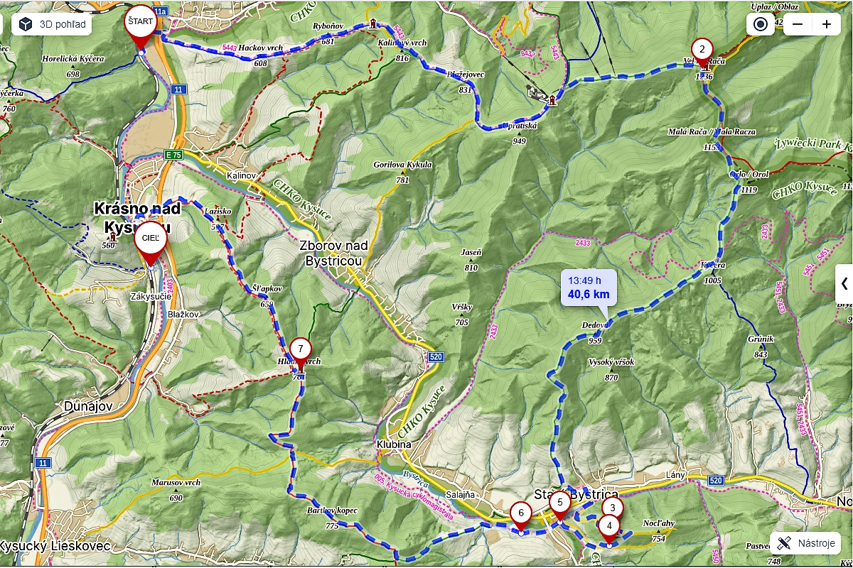Kým prvý „rozhľadňový“ okruh z tejto série bol vhodný na rodinný výlet a druhý pre cykloturistov, tento je určený skôr pre stredných vytrvalcov. Keď som totižto nahodila do plánovača trasu po zvyšných rozhľadniach okolo Bystrickej doliny, vyšlo mi to na výživných 41 km a cca 14 hodín turistického času. Zato však rozhľadní na tejto trase sa urodilo až päť: Surovina, Dedovka, Veľká Rača, Bobovec a Hladký vrch. Dám si ich presne v takomto poradí, oblúkom z Oščadnice do Krásna nad Kysucou.