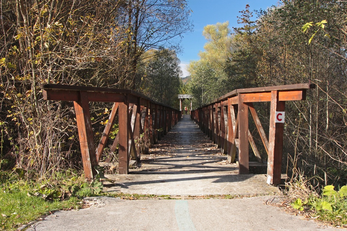 Keďže na túto túru je potrebný dlhší čas, ako ponúka jesenný deň, nastavujem budík na nekresťanskú hodinu a o šiestej ráno už stepujem na vlakovej zastávke v Oščadnici. Vyrážam do tmy a ticha, zakrátko však už brzdím pri prvej atrakcii, ktorou je vyhliadková lávka nad riekou Kysuca. V tejto rannej hodine je bez výhľadu, ale obzriem aspoň drevenú sochu Devy Kysuce, ktorá má symbolizovať vlny a spätosť s riekou. Škoda, že toto jemné dielo sa už rozhodli vylepšiť aj miestni samozvaní umelci fixkami...