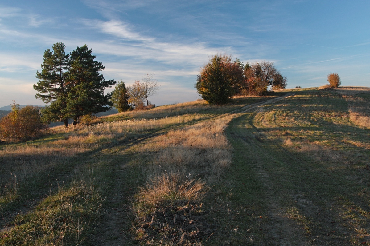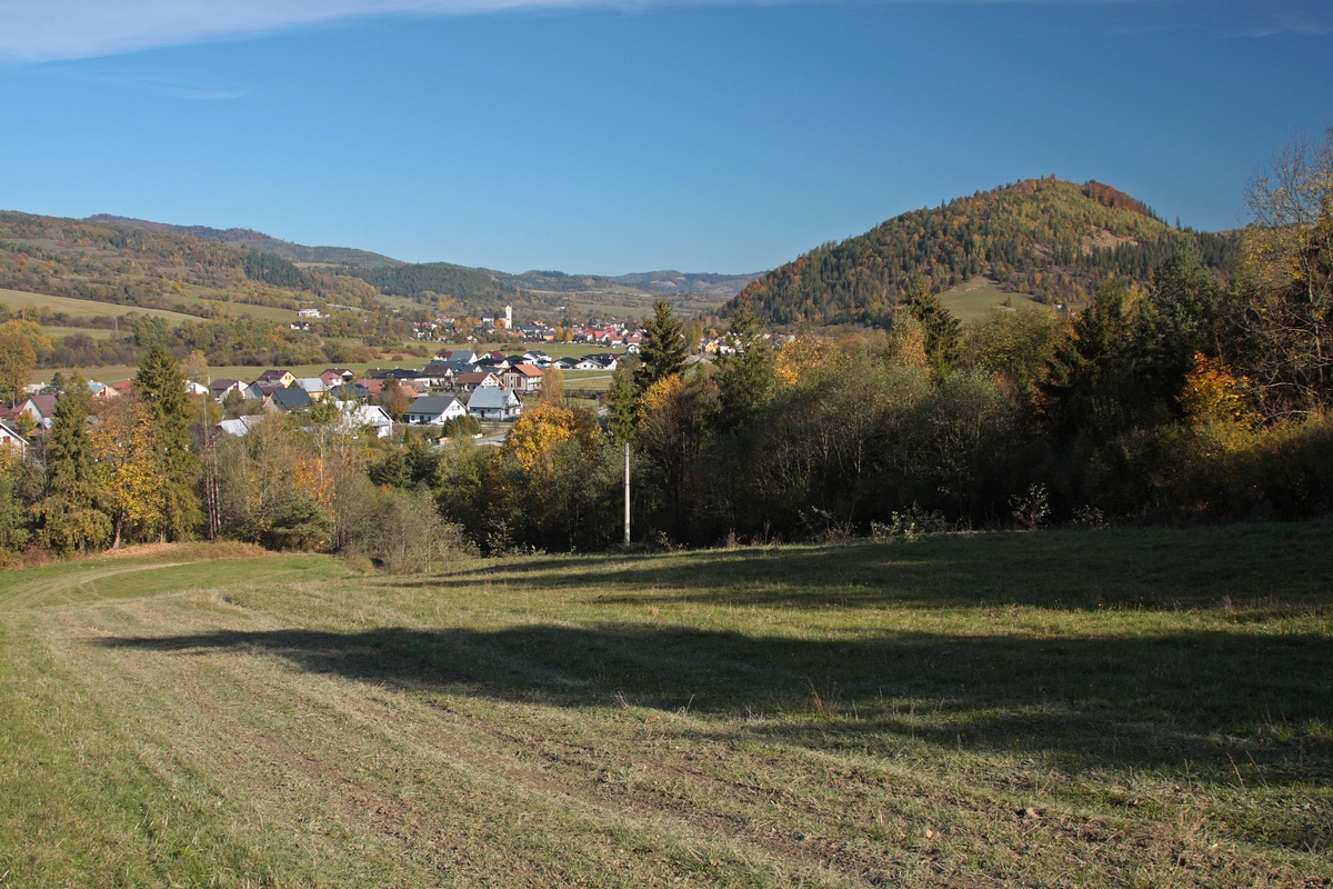 Potom už pozvoľne klesám priamo do Krásna, na striedačku lesmi a výhľadovými lúkami. Akurát včas, lebo slnko už zapadlo a v lesných tôňach sa k moci dostáva príšerie. Prepletiem sa centrom obce popred kostol sv. Ondreja a nekonečnou ulicou na železničnú stanicu. Okruh uzatváram nakoniec ešte pred zotmením, po 12 hodinách, bez nejakého výraznejšieho náhlenia. Cestou som stíhala aj fotiť, trochu hubárčiť, zbierať odpad, ale hlavne sa do sýtosti kochať, lebo na to je tento okruh ako stvorený.