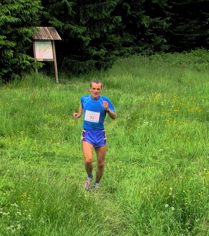 Veľmi milo ma prekvapila aj tá v propozíciách neuvedená stanica „poslednej pomoci“ na Polianke. Potom som ešte pri chate zbadal nášho klubového predsedu a zahulákal som na neho, nech si všimne v akom tričku bežím (v klubovom!) a že chcem preplatiť štartovné. Nato mi on odhulákal, že nič nebude, lebo som sa isto flákal, keď ešte vládzem takto ziapať dva kiláky pred cieľom. Takže nasledoval už len posledný kúsok po asfalte cez to sídlisko a cez cieľovú bránu a hurá na všetky tie dobroty na stolíkoch. Potom už len tie príjemné popretekové rituály, ako sprchovanie, papanie a vykecávanie so známymi, ako sa kto cítil tam hore. Vyhlasovanie sa ma samozrejme netýkalo, ale slušne som z trávnika zatlieskal, veď si to zaslúžili tí vyhlasovaní. Len mi bolo trochu ľúto tých posledných, dobiehajúcich v zabudnutí už v priebehu vyhlasovania výsledkov alebo po limite.