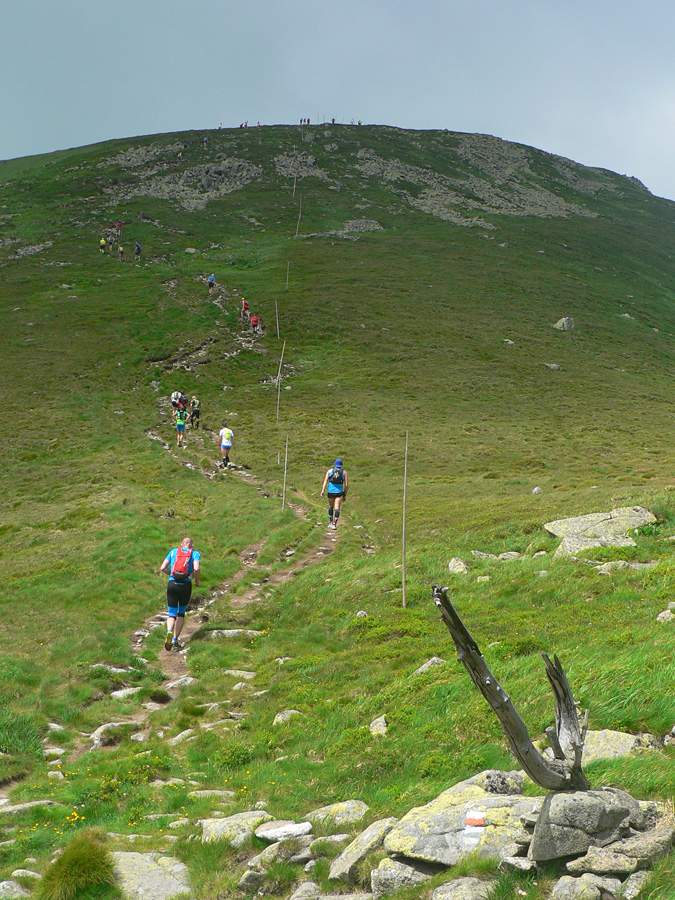 Tri autobusy vyvrhli svoj obsah na parkovisku na Trangoške, a ten hurá obštievať, obsierať, sčasti aj obehávať okolitú flóru. Štartový košiar bol zas väčší ako vlani (a zase viac hýril farbami), lebo prvýkrát sa stalo, že sa naplnil limit 300 ovečiek. Aj keď nakoniec odštartovalo len okolo 250 kusov, nabudúce možno bude treba pri registrácii rýchle prsty na klávesnici. Vidno ako rýchlo idú do módy tieto horské behy.