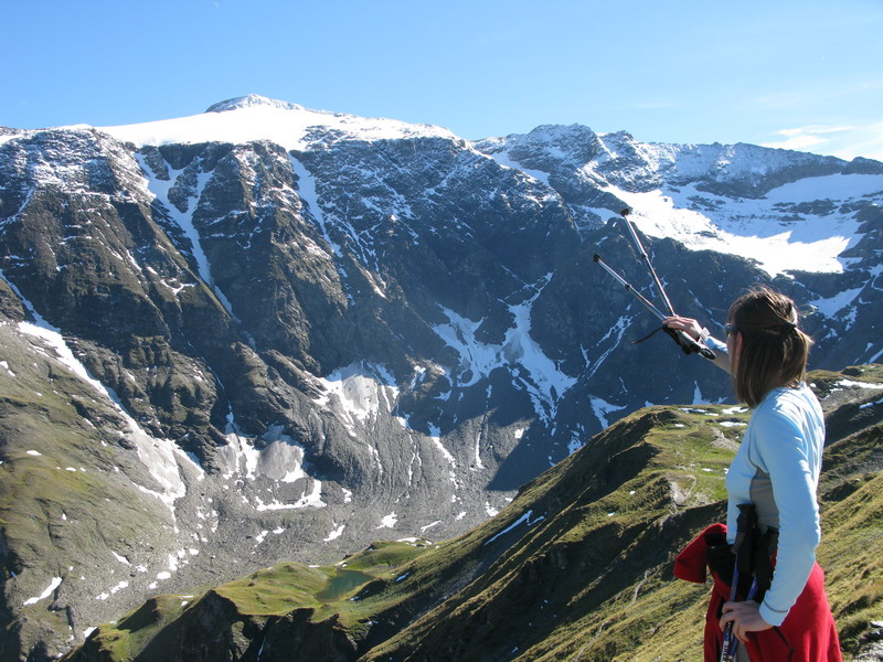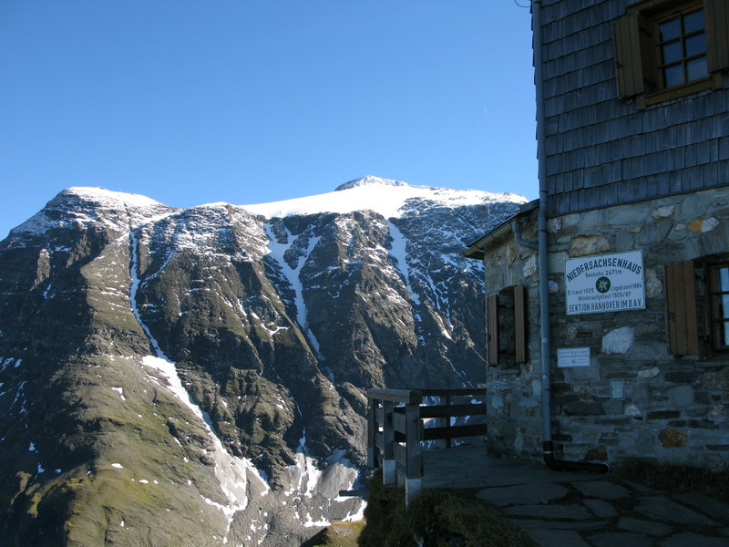 Kôli výhľadom sa rozhodujeme pre výstup na Niedersachsenhaus 2472m. Odtiaľ si za dve hodinky chôdze do kopca vychutnáme výhľady nielen na Hoher Sonnblick, ale otvorí sa nám výhľad aj na ďalšiu zaujímavú trojtisícovku Schareck 3123m. Aj na tento kopček si už brúsime na zimu hrany...