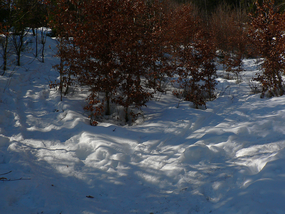 Nad delom začína dominovať na rovinkách a v tieňoch premrznutý, ale aj cez deň normálny sneh, v strmších a k slnku otočených, otvorených miestach cukrový kašan. V tieňoch to už lepí.