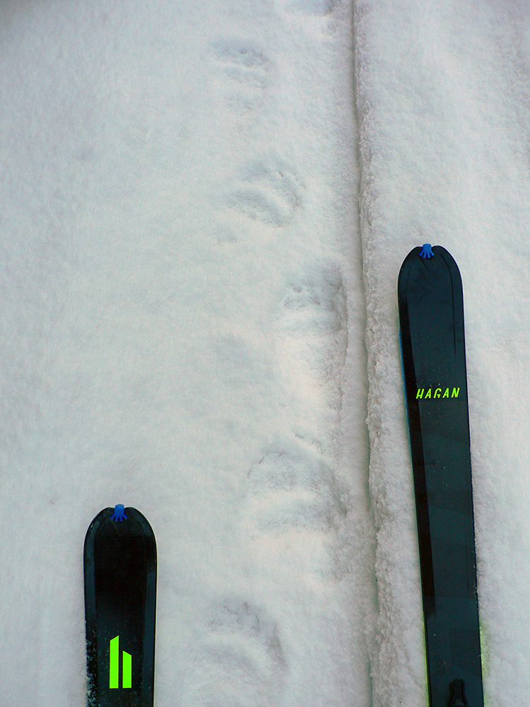 Začal som z Donovalov, ale nie z centra a netradične dole kopcom – z busu som vyskočil „pod Magurou“ a popri miestnom zbernom dvore a čističke som vybehol na Mistríky, s lyžami v rukách. Odtiaľ už dole pomedzi domy a lesom prepekná cestička až do doliny, ktorou som sa vyplazil k útulni pod Kečkou. Chvíľku ma aj medvedie stopy viedli :-) Samozrejme som zabudol zapnúť hodinky, ale toto trafí každý a do doliny sa dá nastúpiť aj z auta od hlavnej cesty.
