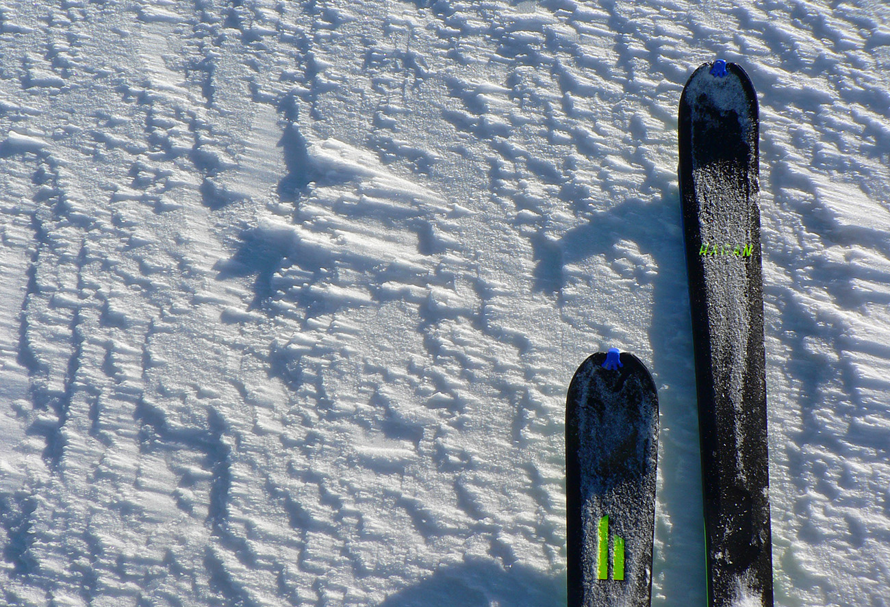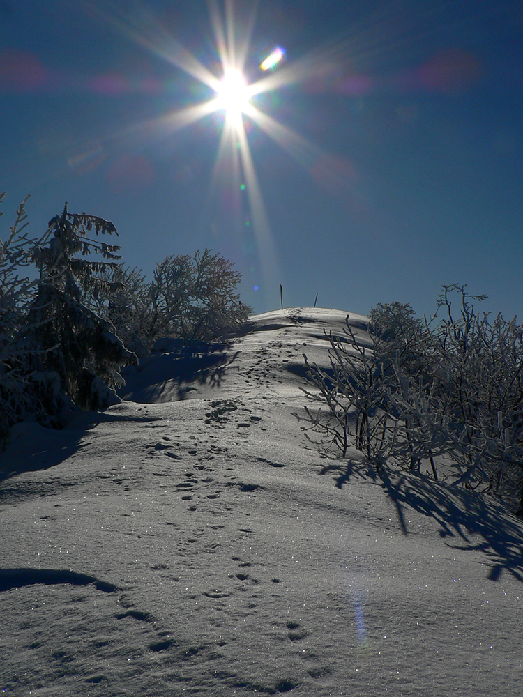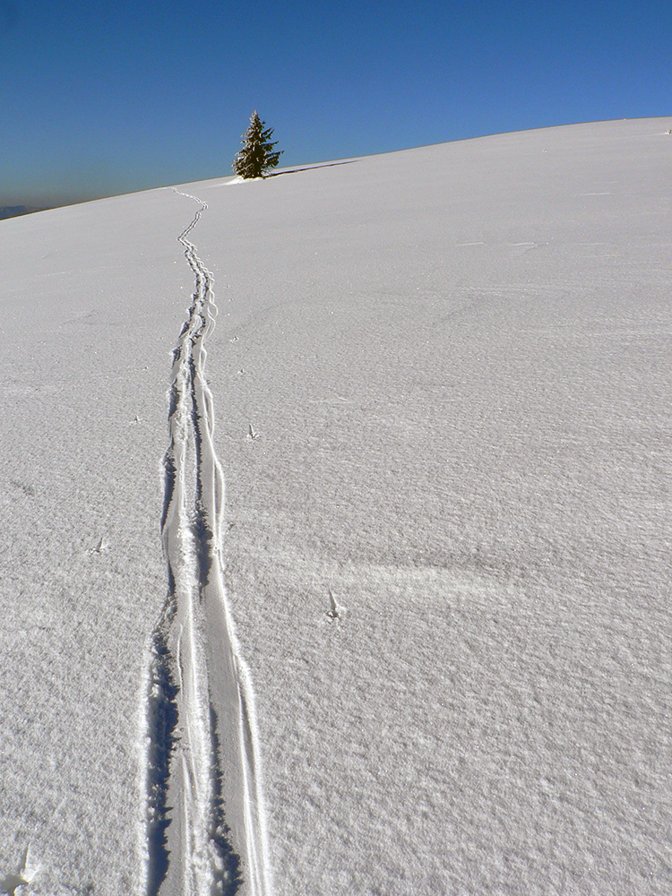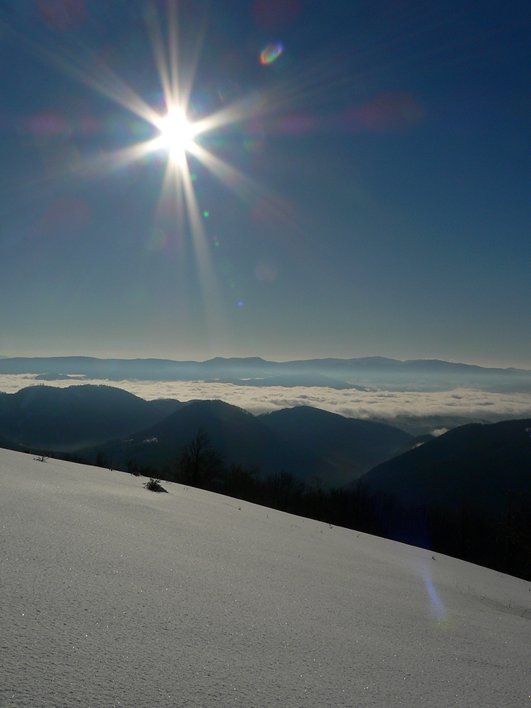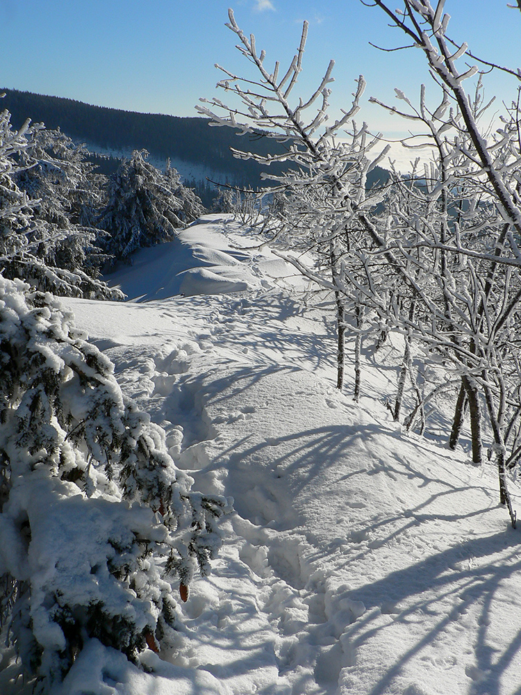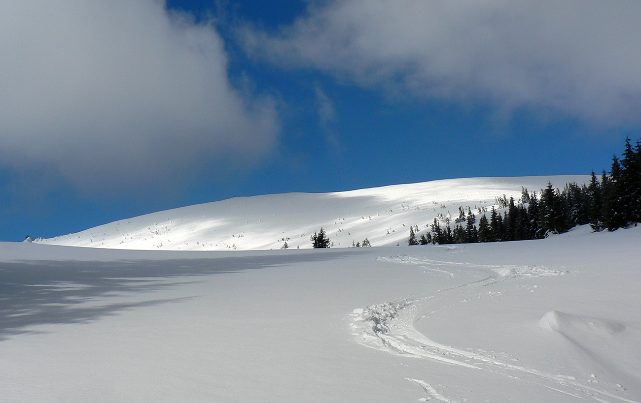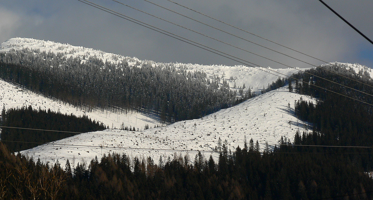 Po arktickom počasí sa zase dovalil hnusný odmäk, no prvé dni ešte vo vyšších polohách moc neuškodil. Naopak – aj dobre spravil, keď prilepil k zamrznutému podkladu nový sneh. Šialená zima, ako na hojdačke... Ale čo už. Šiel som teda vyskúšať tie vyššie polohy masívu Prašivej. Mal som viac variantov „denného programu“ podľa toho ako nohy pôjdu. Rýchlo sa ukázalo, že nejdú vôbec, tak som to nehnal po hrebeňovke, ale ostal som tam polyžovať. A dobre som spravil a nebol som sám – na starom ľade taká hutná, vetrom a už aj slnkom ubitá vrstva nového snehu, do 10 cm. To na juh. Od hrebeňa až do lesa takmer žiadny ľad. Len na hrebeni miestami trochu tvrdšie šindle, strungy, kto to už ako volá. Severy samozrejme tvrdé, vyfúkané, hrboľaté, tam som ani nešiel. Ale po nedávnom lavínovom poplachu ani stopy.
