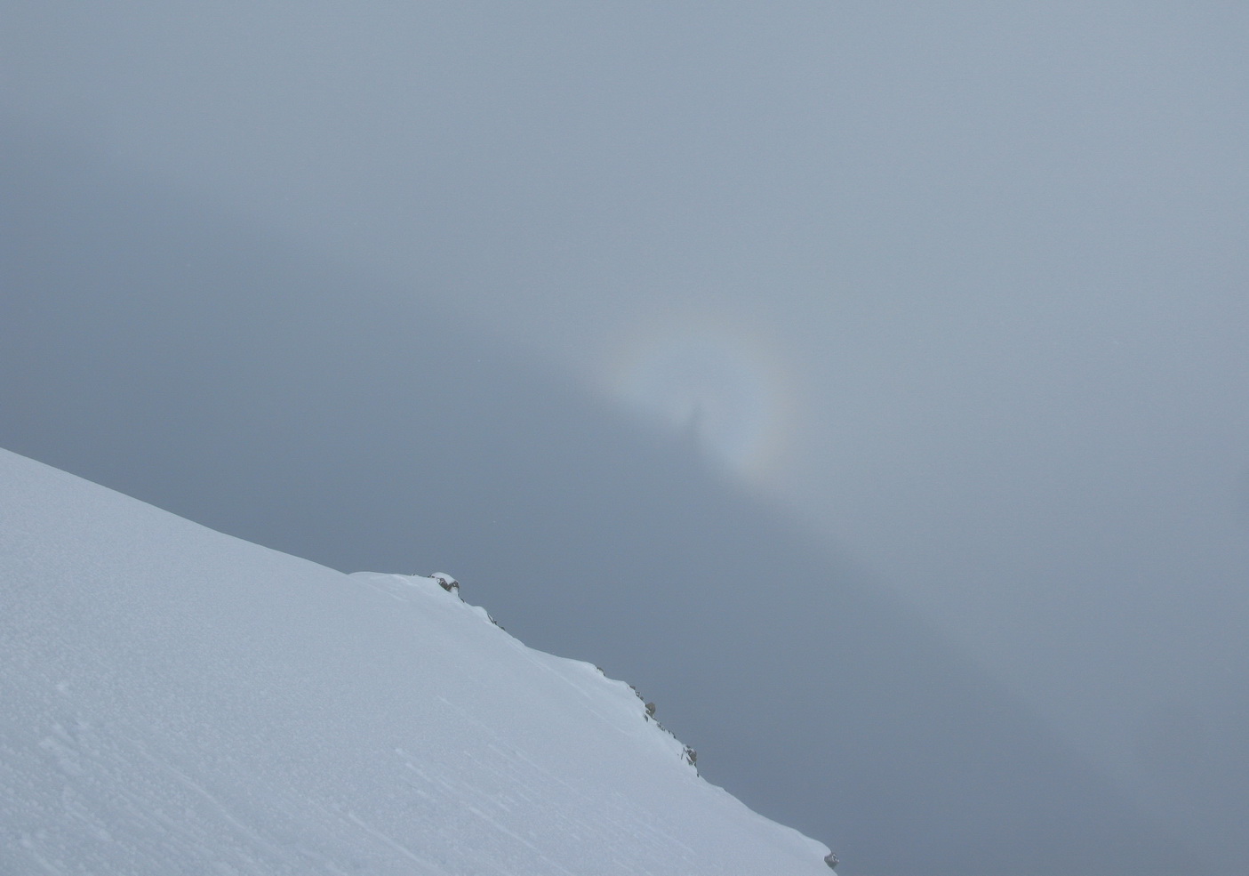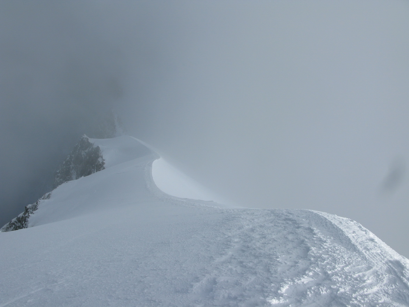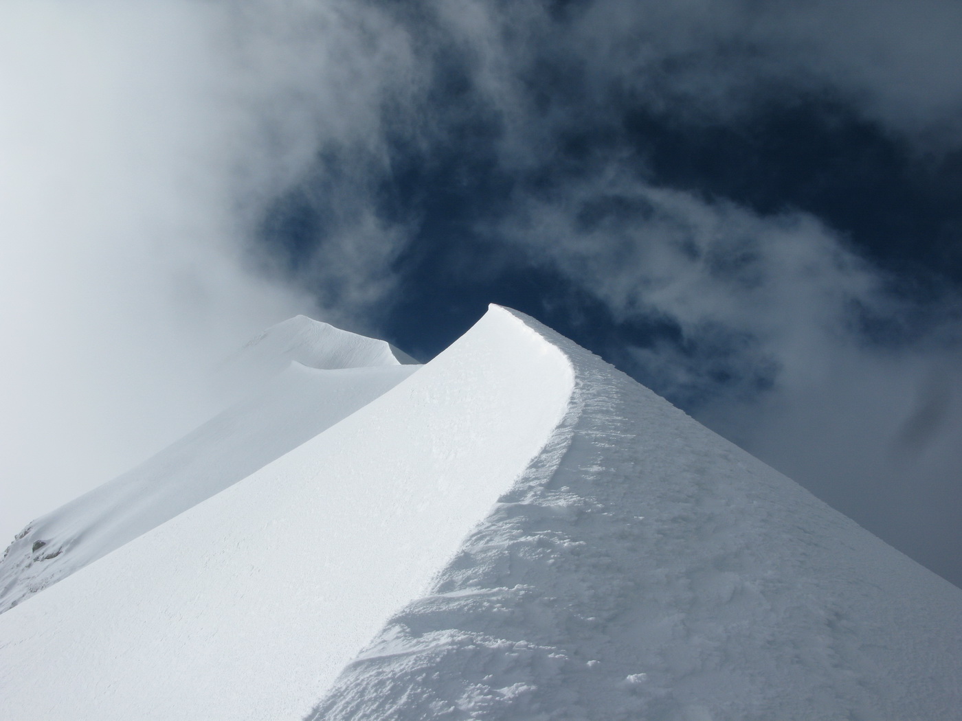 Prichádzam ku hrebeňu, je to stále ťažšie traverzovať ho v týchto podmienkach. Kúsok po hrebeni idem štvornožky. Tu mi boli mačky aj čakany nanič. Pri pohľade vpravo mi nie je moc dobre. Ľavá strana je na tom len o kúsok lepšie.