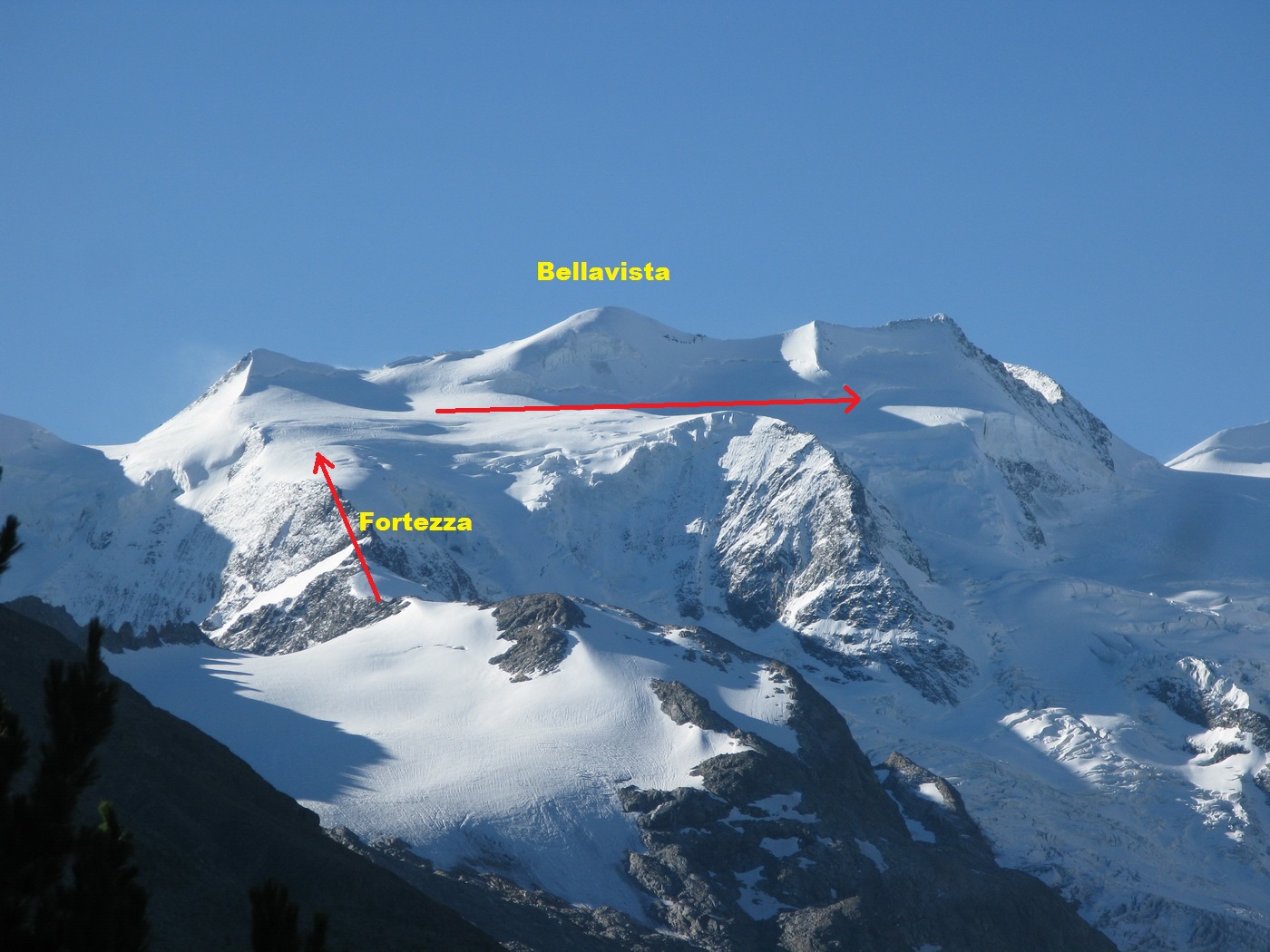 Piz Bernina (4049m) je najvýchodnejšou štvortisícovkou, najvyšším vrcholom tzv. Berninských Álp a zároveň aj najvyšším vrcholom a jedinou štvortisícovkou Východných Álp. Nachádza sa v juhovýchodnom Švajčiarsku na hraniciach s Talianskom. Najľahší výstup na vrchol vedie hrebeňom Spalla (obtiažnosť II., PD). Na tento hrebeň sa dá dostať z talianskej a rovnako aj zo švajčiarskej strany. K výstupu je hojne využívaná chata Marco e Rosa (3609m.) Zo švajčiarskej strany vedie prístupová cesta skalným hrebeňom Fortezzagrat a potom ľadovcovým balkónom Bellavista. Táto trasa nie je obzvlášť technicky náročná (II. UIAA), problémom je dĺžka a prechod ľadovcom s trhlinami.